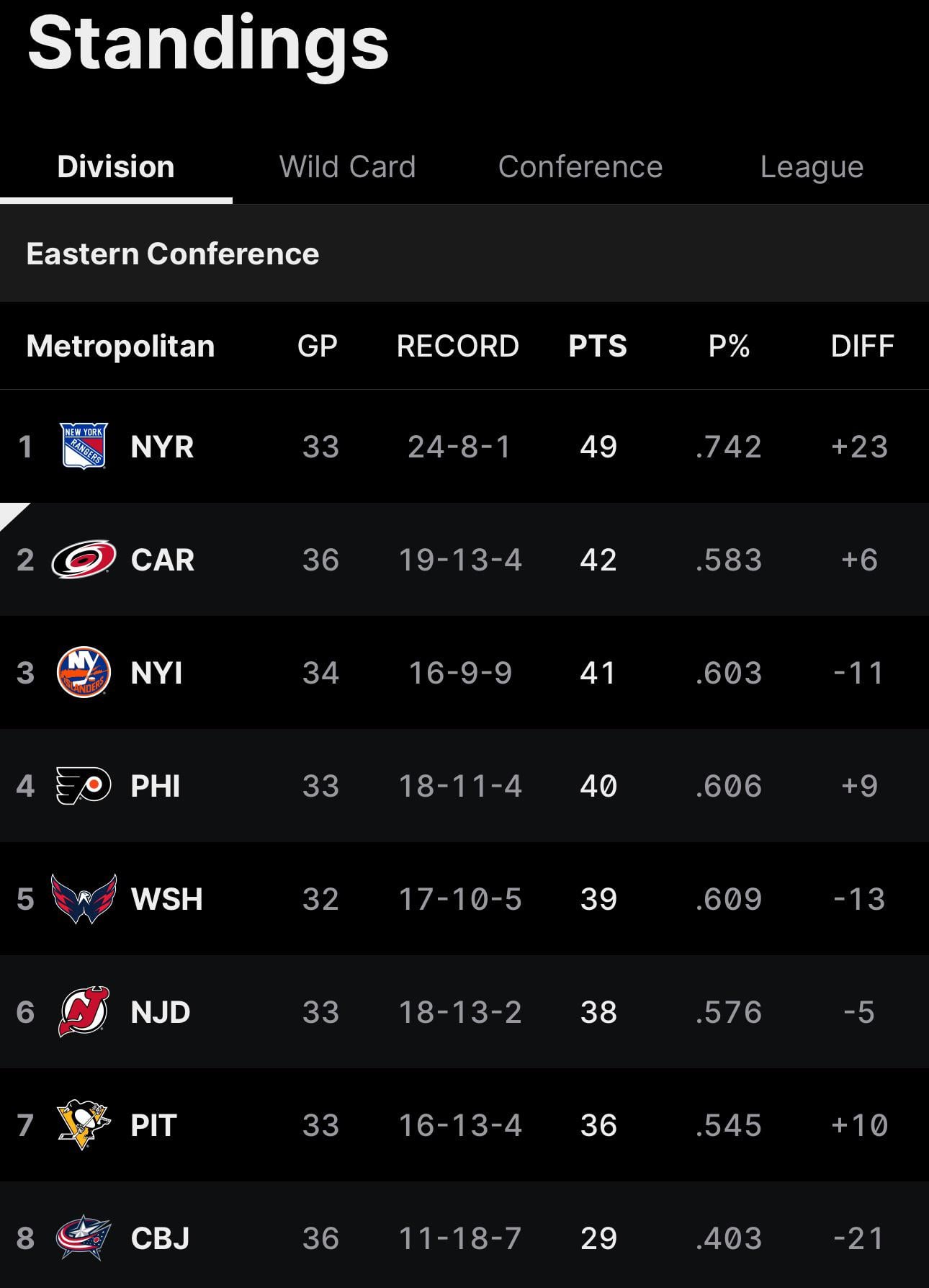 Just goes to show how tight it is, in the span of 2 nights we went from out of the playoffs to #2 in the division. Buckle up, going to be a wild ride.