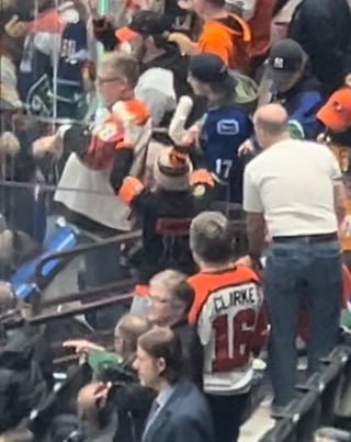 This woman took a video of my son with his uncle when Carter Hart was signing his jersey. She tried to get my brother’s attention afterwards but my brother didn’t notice. I just noticed today watching the video I took from our seats otherwise I would have gone down and asked her! I’d love to get the video she took if possible! It was such an amazing moment for my son!!