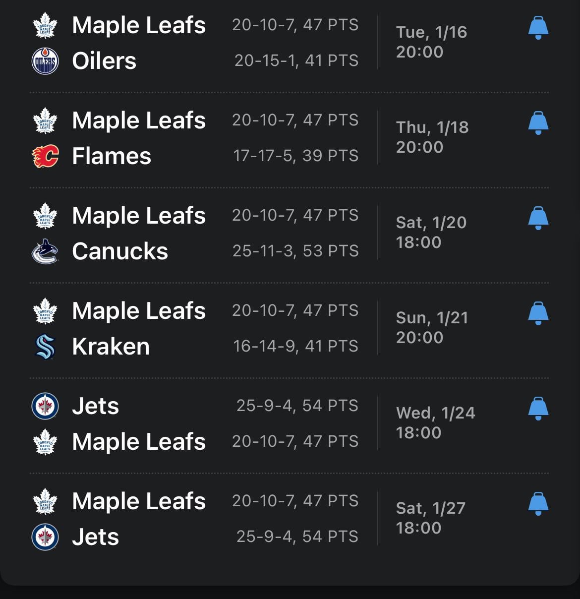 I understand you’re looking at it from a Leafs-centric point of view but consider for a moment the Jets’ schedule. That week they are doing a quick trip east to play Ottawa and Boston and then into Toronto before returning home.