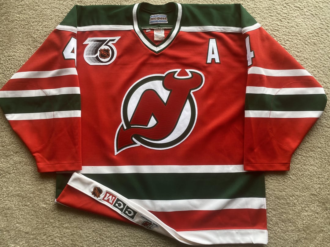 rgst11 2 years ago For Sale: Rare authentic 1991-1992 Scott Stevens CCM xmas ultrafil jersey. – Size 52. – Fight strap – authentic 75th NHL anniversary patch – reproduction Devils 10th anniversary patch – reproduction Custom Crafted hem tag In very good condition. $900 shipped.