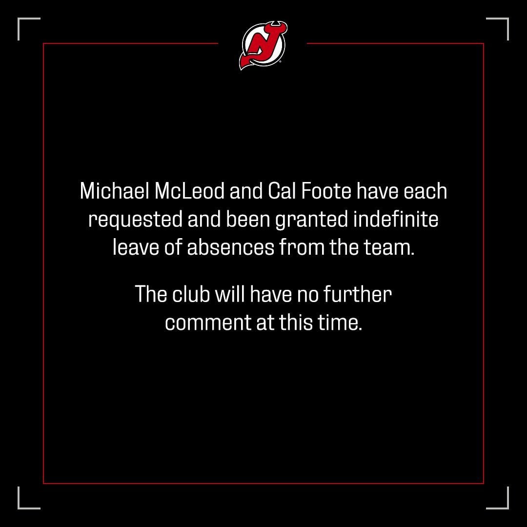 So Dube, Hart, Formenton, McLeod, Foote have all been granted leave from their respective teams at this point. Seems like we have our 5