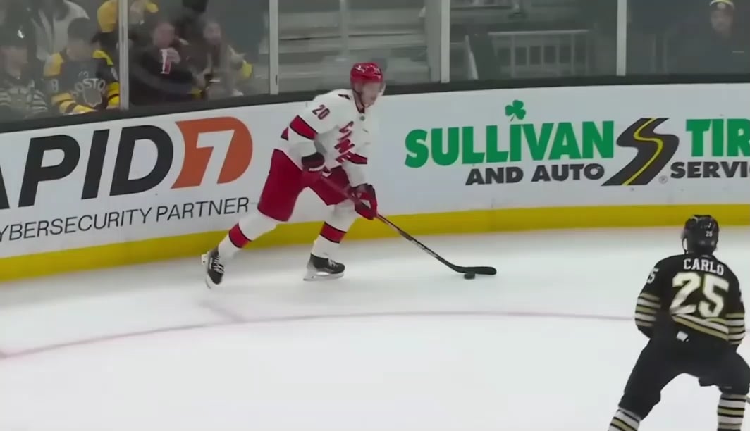 And Necas also went between his own skates to set up his snipe. What these guys make look routine is…something.