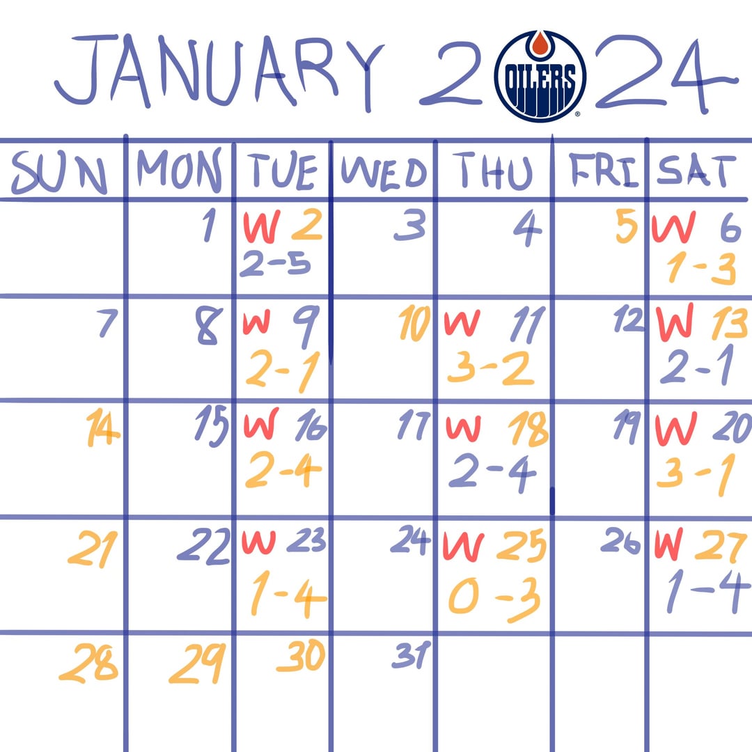THE OILERS ARE UNDEFEATED IN JANUARY. ONE MORE WIN TO TIE PITTSBURGH’S RECORD! by NewSoup69420 edmonton oilersPacific DivisionWestern Conference Prev Post Grand Rapids Griffins] In honor of a fan suggestion from 1995, the AHL Grand Rapids Griffins are playing as the “Flying Toasters” tonight January 27, 2024 Next Post Checking in 201 from tampa visiting from out of town. January 27, 2024 4 Comments domingus67 2 years ago That January calendar is beautiful 😍. I could stare at it for hours BrickMacklin 2 years ago Come get it. You boys have earned it mAAdvillany 2 years ago Has anyone else ever been undefeated in January? ButterscotchFar1629 2 years ago Keep tempting fate people. Keep blabbing on and on about it.Write A CommentYou must be logged in to post a comment.