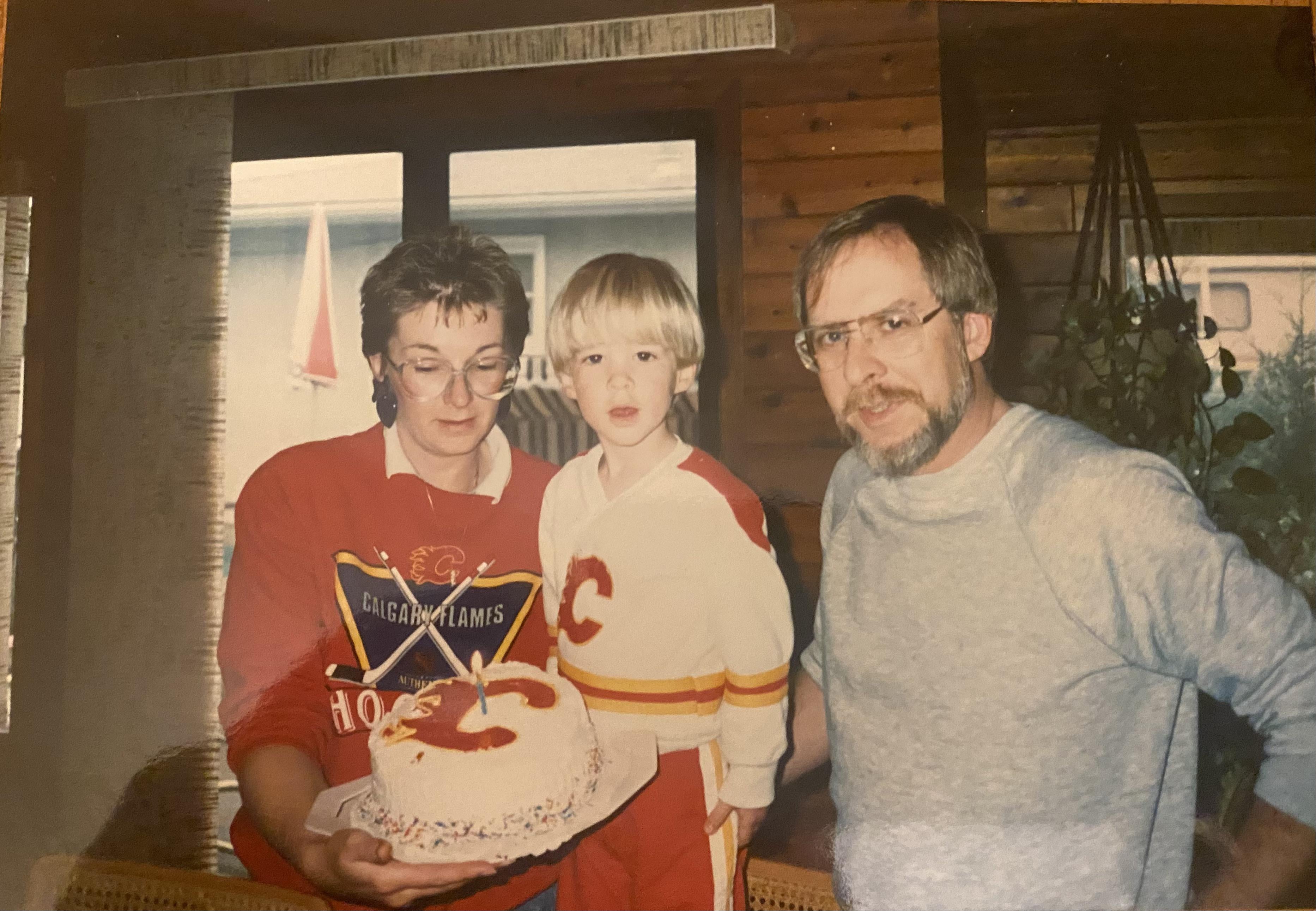 Before I was born, the Flames were my father’s team. He was in the first round of Season ticket holders when the team first moved into the Corral, and he had tickets up until they got too expensive in the early 2000’s. When I was born, I was dressed up in Flames baby clothes, and one of my earliest memories is being bundled in the car to drive down 17th ave when they won the cup. He’d split between taking me and taking my mom or his best friend to the home games I’d wait eagerly to sit on my dads lap and watch every away game. He was a business owner who worked his ass off to provide for our family, and was always home late, but I always felt hockey was our thing.