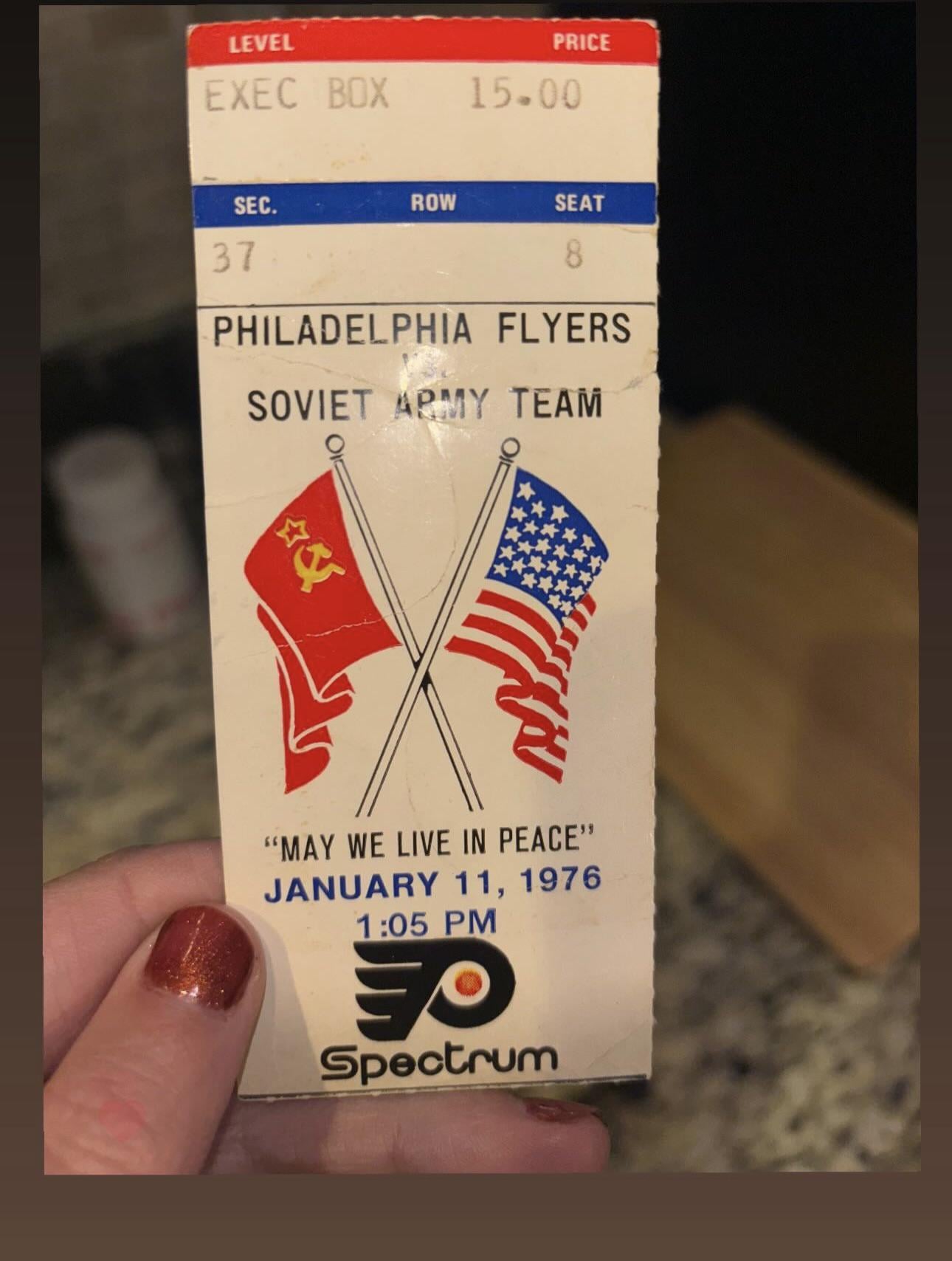 This is awesome, never seen a ticket to that game before….hate or love the Flyers, you gotta love that they beat the Soviets! Literally made them quit the game and Snider told them they didn’t get paid for any game vs NHL unless they completed this 4th and final game LOL