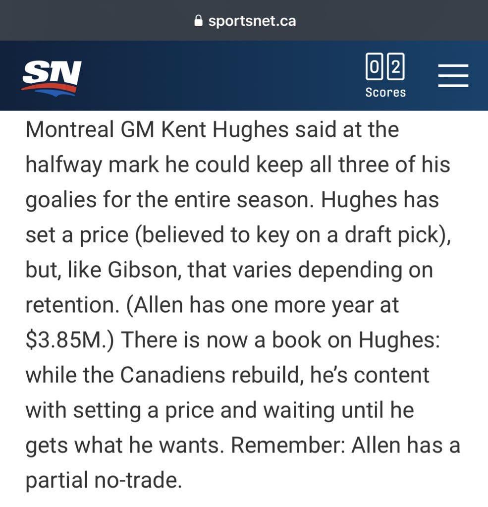 With The luck the Habs have, as soon we trade Allen, Monty or our #3 will get hurt.