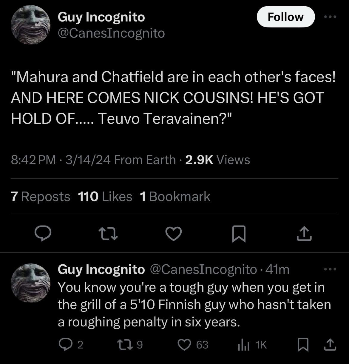 herefor_nothing567 2 years ago I saw Teuvo look at that fight and think “no thank you” then Cousins just went for it lol. FL is just… different
