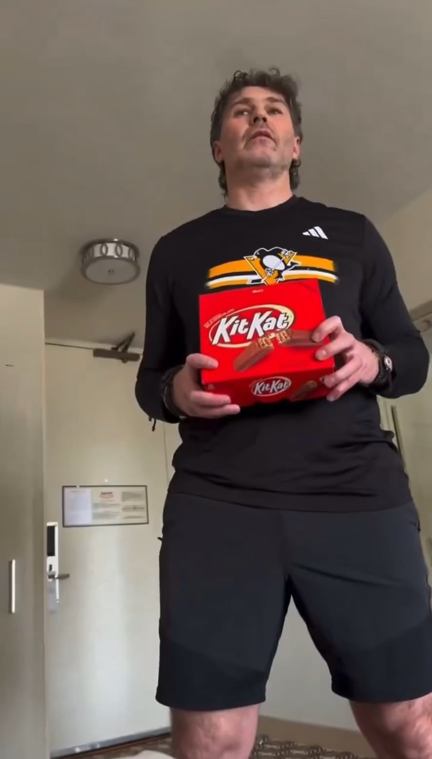 He’s roughly saying: “Today I got KitKats. And when I saw myself in the videos – I really got fatter. But that’s over now. I’m getting started.”