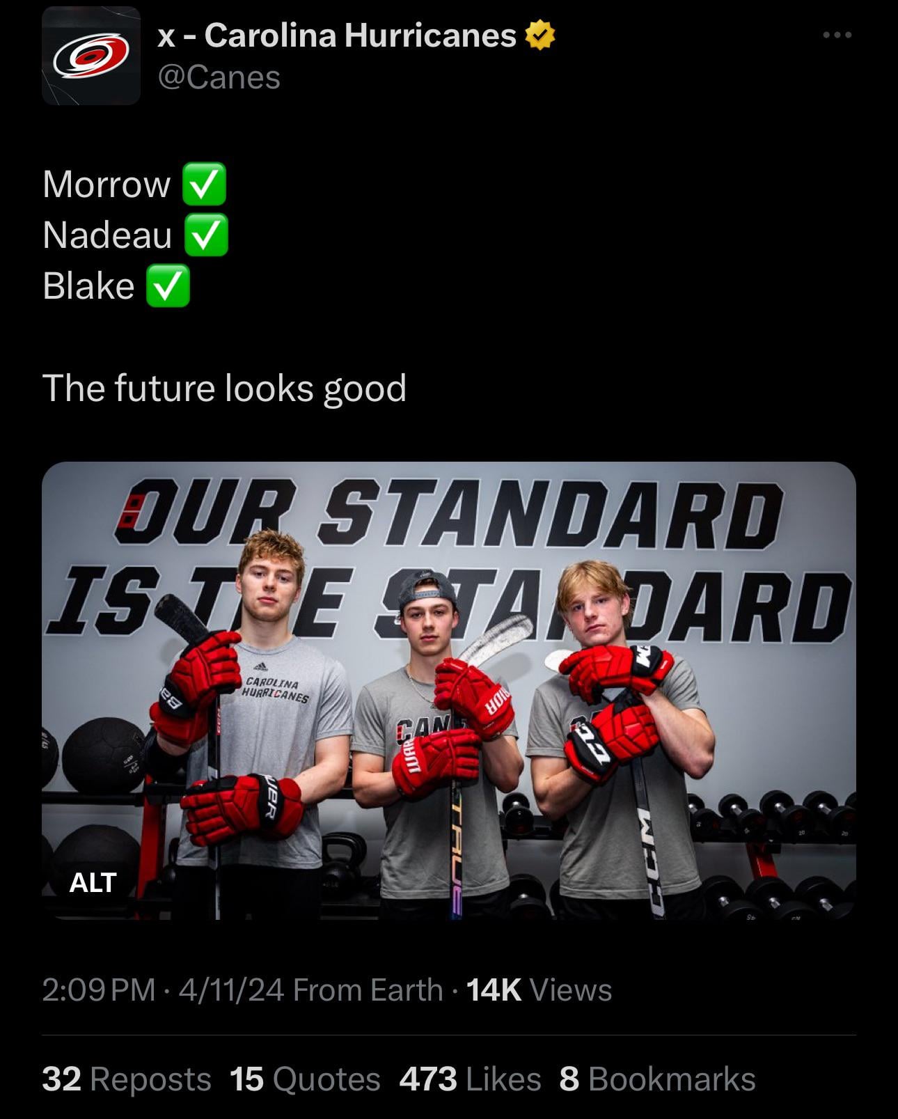 The future looks goodby The_Reddit_Browser Carolina HurricanesEastern ConferenceMetropolitan Division Prev Post How are the Arizona Coyotes rumors about Utah relocation impacting the team? April 11, 2024 Next Post Connor McDavid is a little banged up but the Oilers are still in great shape April 11, 2024 6 Comments SokkasBoomerang3 2 years ago Looks bright even SokkasBoomerang3 2 years ago FIRST TO BENCH 225?Jarvis Blake Nadeau Morrow MainAltAcc69 2 years ago Welp the Hurricanes have now signed players younger than me. I feel old. Harlaxt0n 2 years ago Old man Jarvy here to usher in the new blood. BigVuVu 2 years ago announce AHL team Conyan51 2 years ago Idk why but I like that they each use a different brand of gloves.Write A CommentYou must be logged in to post a comment.