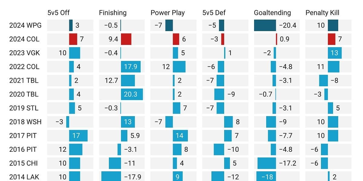 Hello All,It’s my normal Monday post, now with more playoffs preview!!!As always, let me know what you think or any questions you have on this or analytics in general. Also feel free to ask questions for Friday’s Featurettes! by garret9 Central DivisionWestern ConferenceWinnipeg Jets Prev Post ELLIOTTE FRIEDMAN SPEAKS OUT ABOUT THE VANCOUVER CANUCKS & THE PLAYOFFS (Elias Lindholm) April 15, 2024 Next Post Mad for Matheson | The Basu & Godin Notebook April 15, 2024 1 Comment No-Expression-2404 2 years ago I’m getting out of this that the jets are going to stomp the Avs. Thanks for the confirmation!Write A CommentYou must be logged in to post a comment.