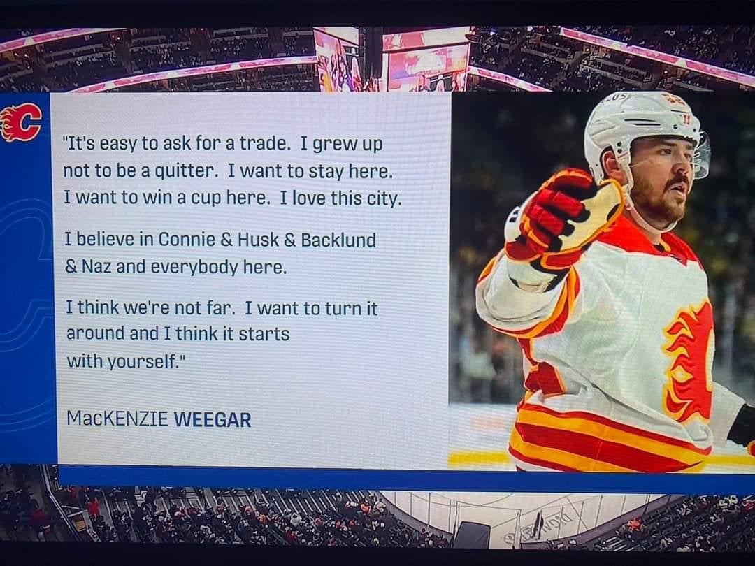 | 741 | [89 comments](/r/CalgaryFlames/comments/1c2stmk/mackenzie_weegar_not_planning_on_leaving_calgary/) | `[Discussion]` [Mackenzie Weegar – Not planning on leaving Calgary ](https://i.redd.it/2qruqwmf66uc1.jpeg)|