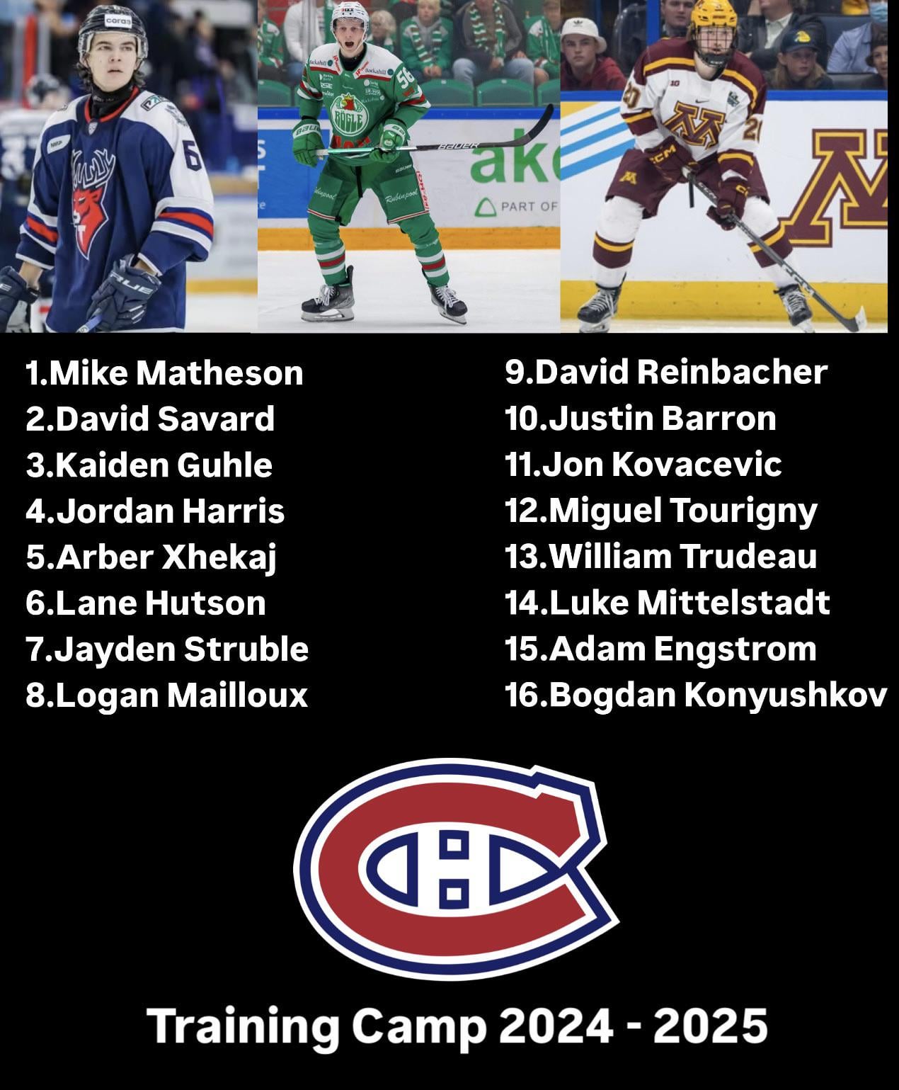 Savard, Matheson, Guhle, Xhekaj start the season. Any combination of Hutson, Reinbacher, Struble, Harris, Mailloux, Barron round out the remaining blue line. By the end of the season Savard, Kovy, Harris, and honestly maybe Xhekaj are gone.