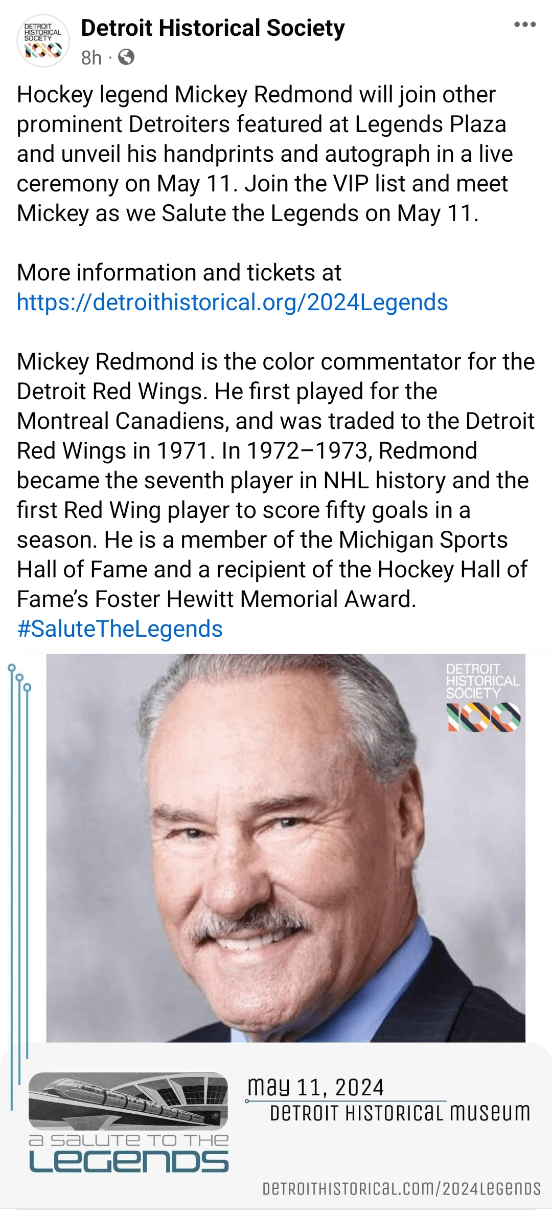 Who wants to come fangirl over Mickey with me??by dekelikedatsyuk Atlantic DivisionDetroit Red WingsEastern Conference Prev Post Revival: Vancouver Canucks 2024 Playoffs Pump-Up Video April 19, 2024 Next Post Mailbag Friday for the Kansas City Royals | Kansas City Royals Podcast April 19, 2024 9 Comments oceanic8675 2 years ago I’ve never wanted anything more OnlyWordsWillMakeYou 2 years ago If you want to meet and greet the legends, [it’ll take buying a $500 “sponsor” ticket](https://detroithistorical.org/things-do/events-calendar/events-listing/2024-detroit-historical-society-ball-salute-legends). OkProfessional6077 2 years ago Will there be Ginger Ale? Jojo_Calavera 2 years ago Holy Mackerel! SikkWithIt 2 years ago Ugh, I wish. I really want a Redmond jersey from the Alumni game and to try to have Mick sign it FragrantBus4142 2 years ago Oh boy Tukten 2 years ago #bestannouncerever rpb539 2 years ago You could go to an alumni game and meet him for a fraction of the $500 price. BlackHeartedXenial 2 years ago His voice is just so warming!Write A CommentYou must be logged in to post a comment.