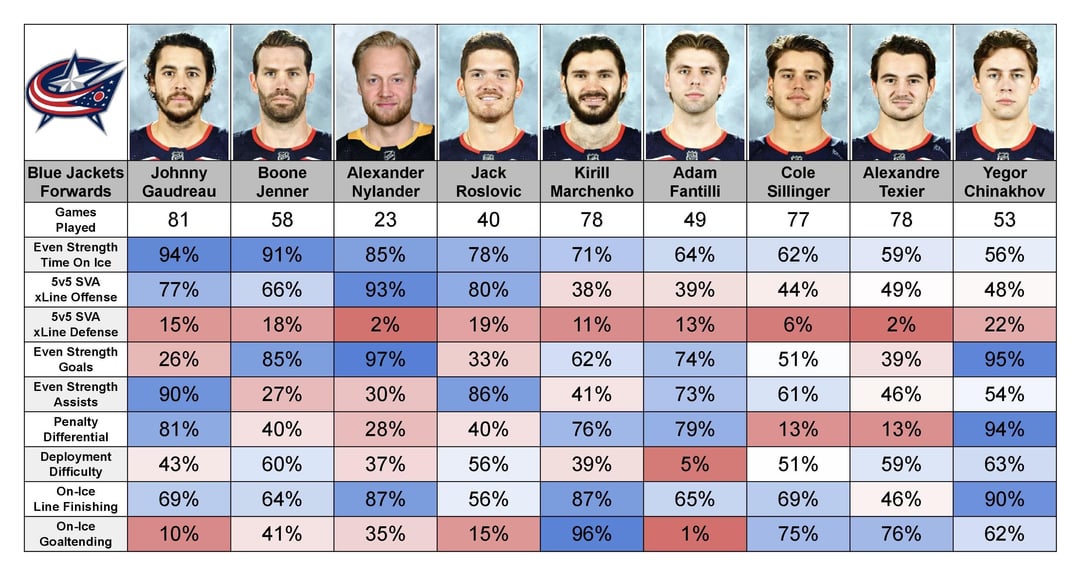 Forwards are only compared to other forwards, defensemen only to other defensemen.