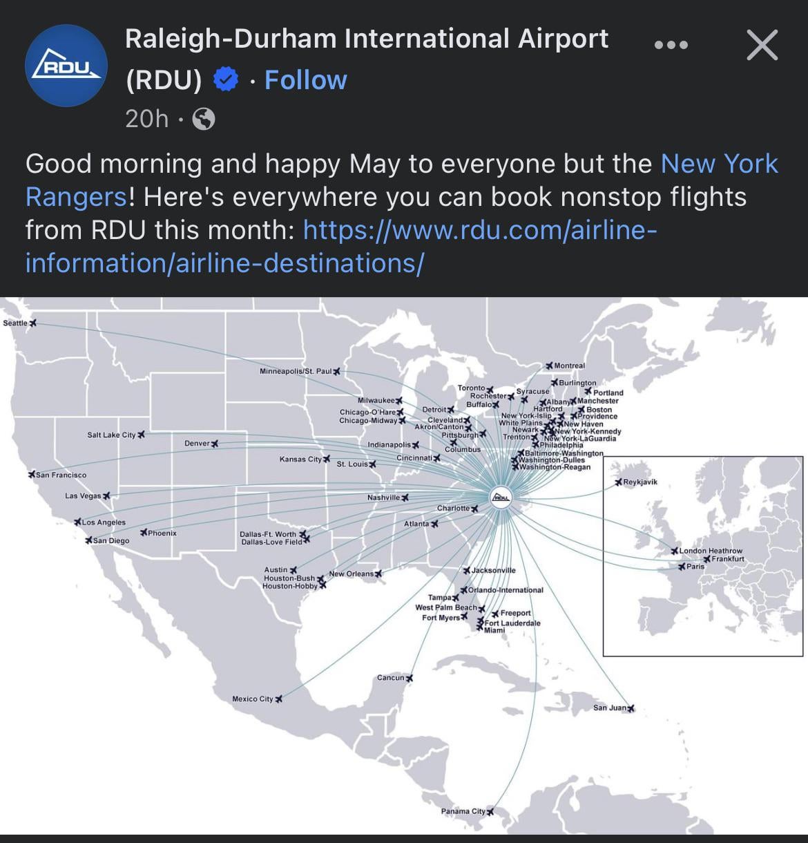Off topic response but looking at this map is a reminder to how much the whole region has grown. Who thought there would be direct flights to Europe out of RDU 30 years ago? I grew up in Greensboro as a 90’s kid and I’m pretty sure that the triad (GSO, WS, HP) was just as big if not bigger than the triangle. There were even rumors of the Twins relocating to the Triad. Over the past 30 years the triangle just exploded and while the triad has grown it has not nearly as much.