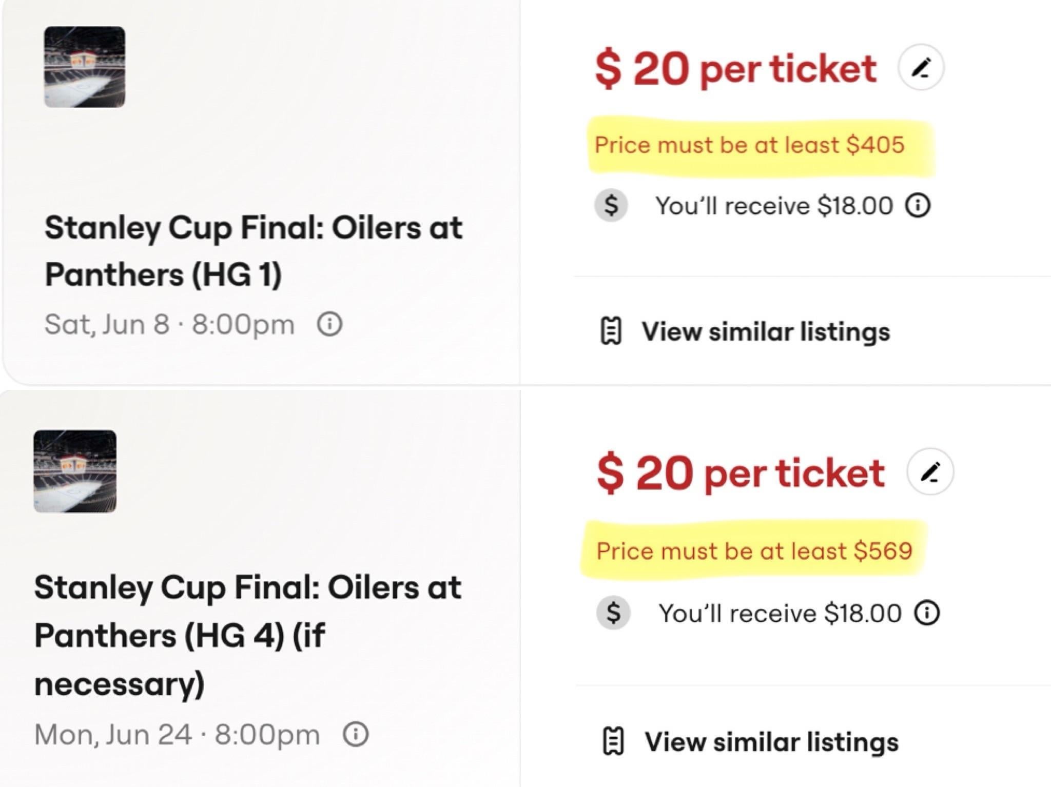 I had an extra ticket for the Toronto game, for example, and it wouldn’t let me list it for less than $60. When it wasn’t selling, I went back and they lowered that bottom number to $50. There’s no way of knowing if/when they lower that number. It’s extremely inconvenient for everyone involved.