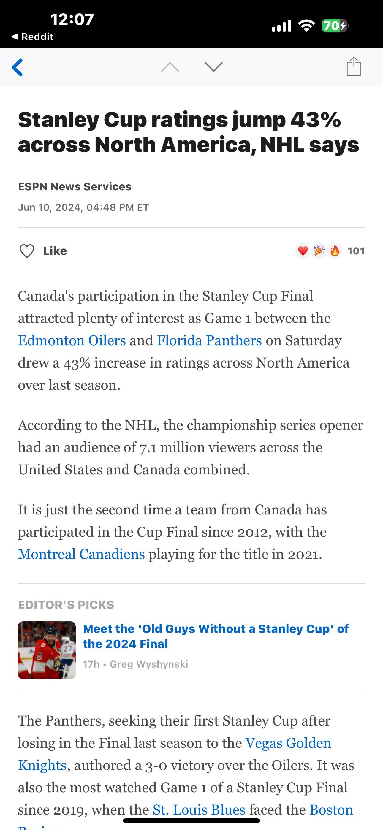 Rank_Runt 2 years ago Definitely brings a lot of people back.. Some because it’s been a long time since Canada had the cup and it would be a great story..Others, like me, because it’s been a long time since Canada had the cup and I find it pretty funny that they’re so close but still won’t get it.