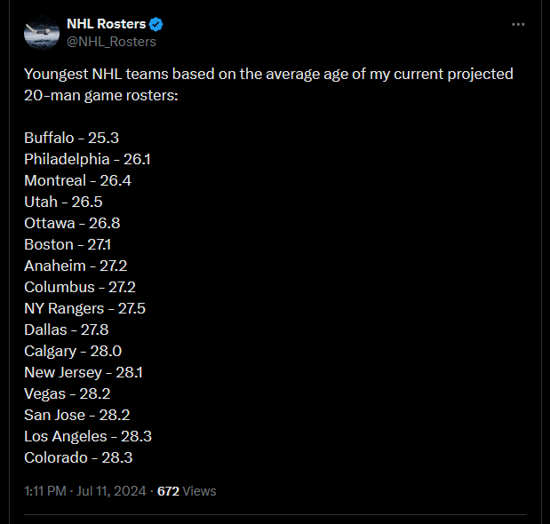 We’re still gonna get rage bait comments all year about the Flyers having too many vets, playing older players too much and how Danny isn’t doing enough to make the team younger.