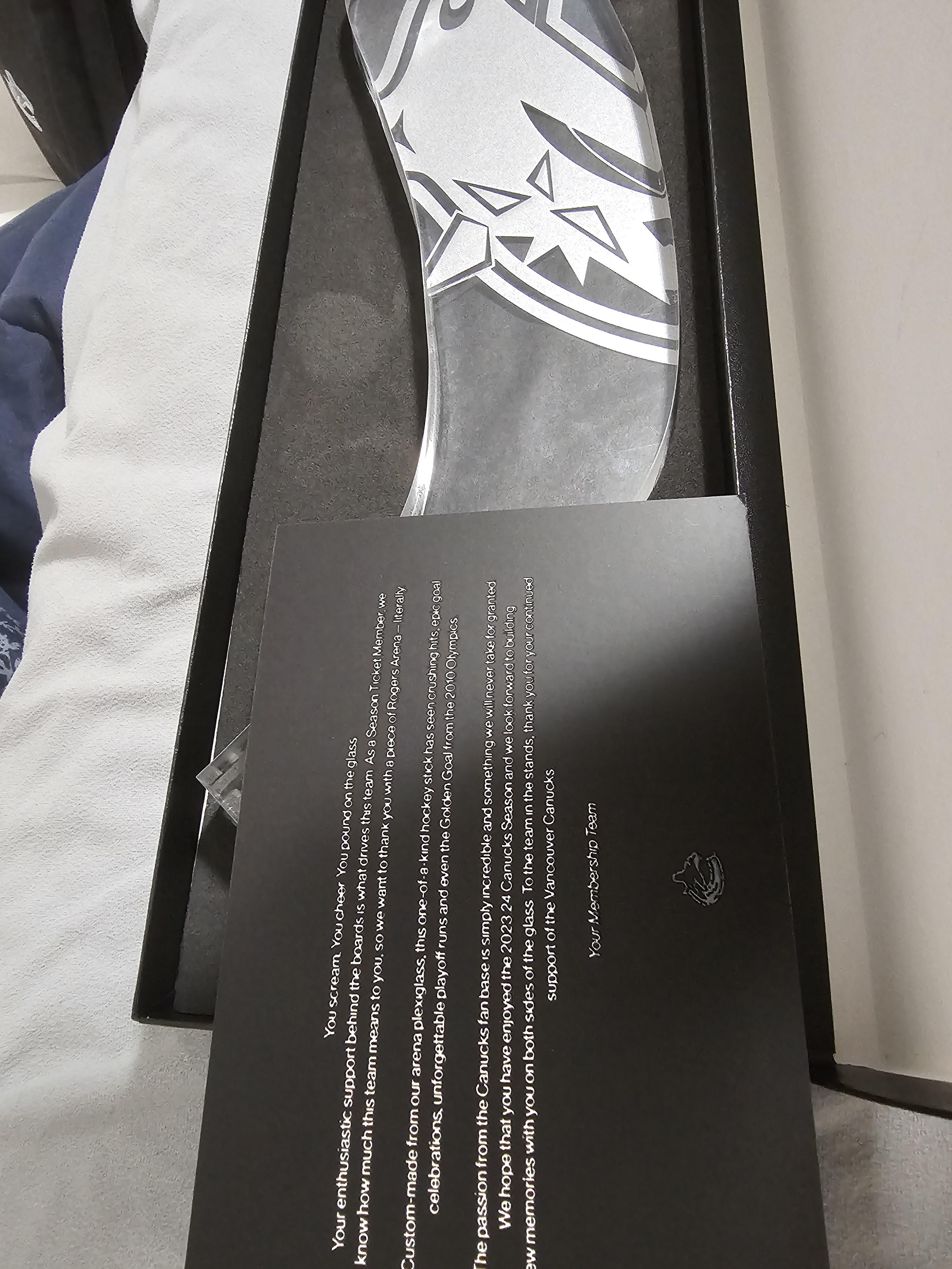 Thanks for the post, it definitely looks pretty cool. I remember one year the STH gift was a glass puck filled with ice (water) from the sedins last game.