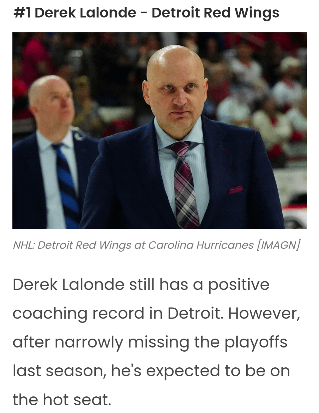 That’s kinda ridiculous imo. I don’t see Yzerman firing him. Wings are playing better than they have in years, and their style is fun to watch under Lalonde. Nobody seems to expect Detroit to make the playoffs anyway.