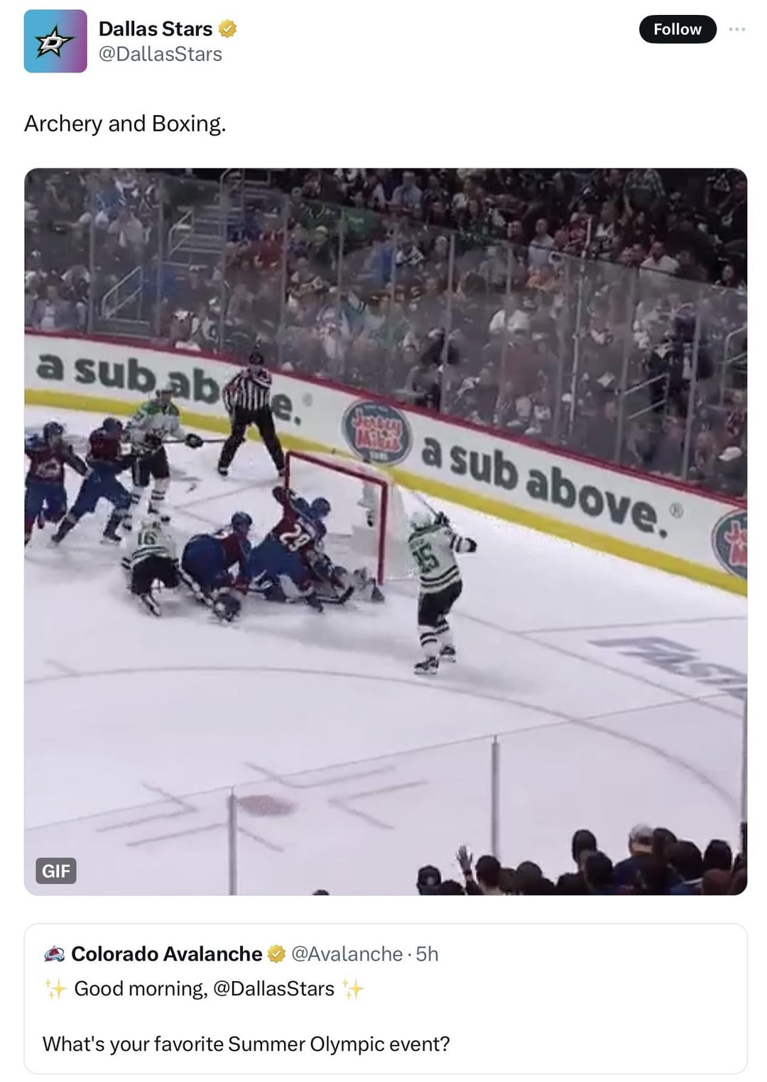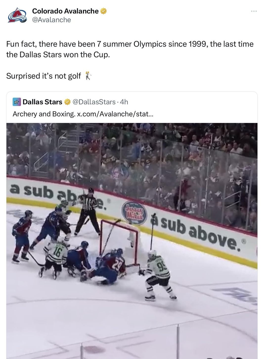 Canadian__Ninja 1 year ago Did the Avs Twitter just cold call the stars or was there a hidden message that triggered this whole thing
