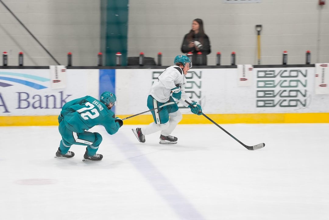 - Celebrini was first on the ice and last off. The guy is dialed. Like others have said already, he’s noticeably the better player when he’s on the ice. Small little mistakes here and there but crazy talent. I saw him pull the puck in between his skates numerous times to make a beautiful pass. He caught someone looking at the puck a few times and made them look like amateurs.