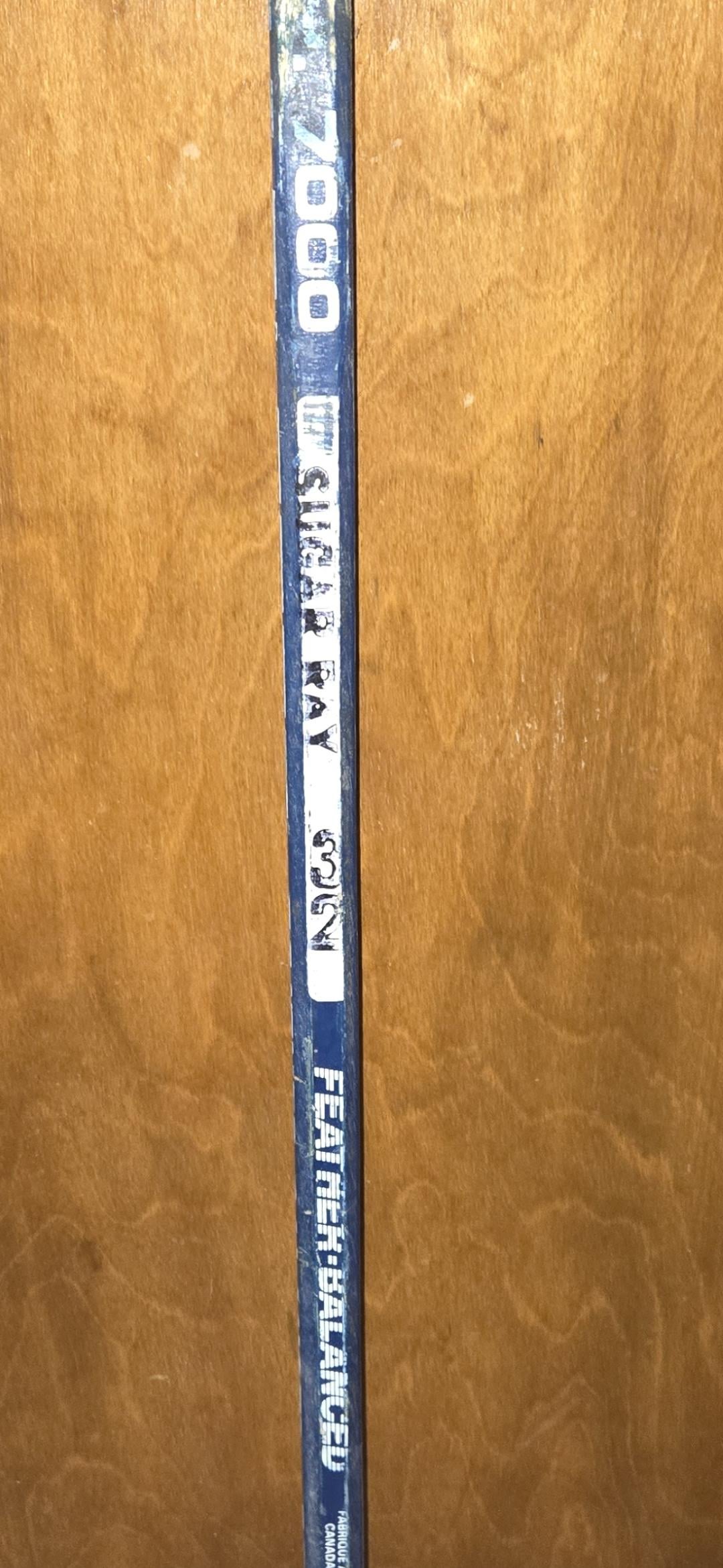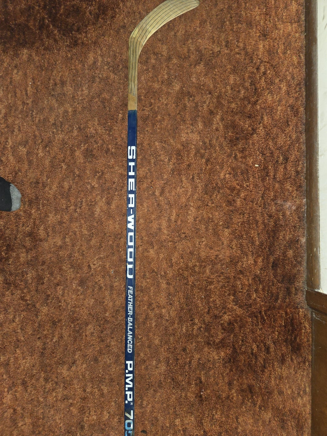 I got this from a trainer during warmups some time in the early 90's. I'd like to believe Rayzer had him give it to me but he wasn't near the bench at the time and didn't acknowledge me coming off or anything. It went missing a few years later and stayed missing until my mother cleaned her garage and the rarely used attic space above it a few days ago. I turned up in a pile of beat-up old street hockey sticks. I held on to an insane belief that it would turn up again eventually, even after turning the house upside down looking for it. Never thought it would happen 3 decades later. It's probably a little dry-rotted, and the tape on the butt end seems to have disintegrated, but it's still in the same shape as when I got it.
