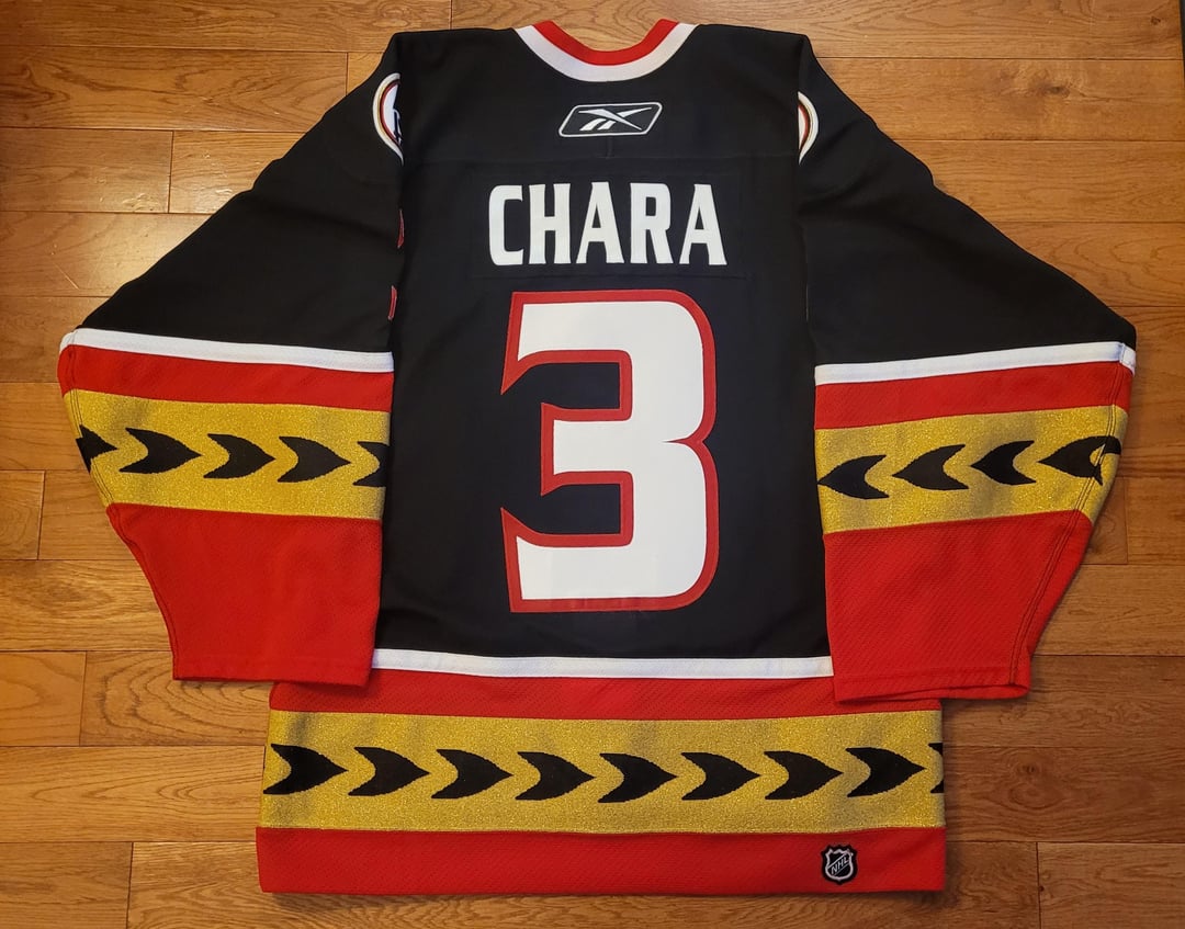 '05-'06 authentic on-ice (sz 46) Reebok alternate Chara, customized by the Sens Store.