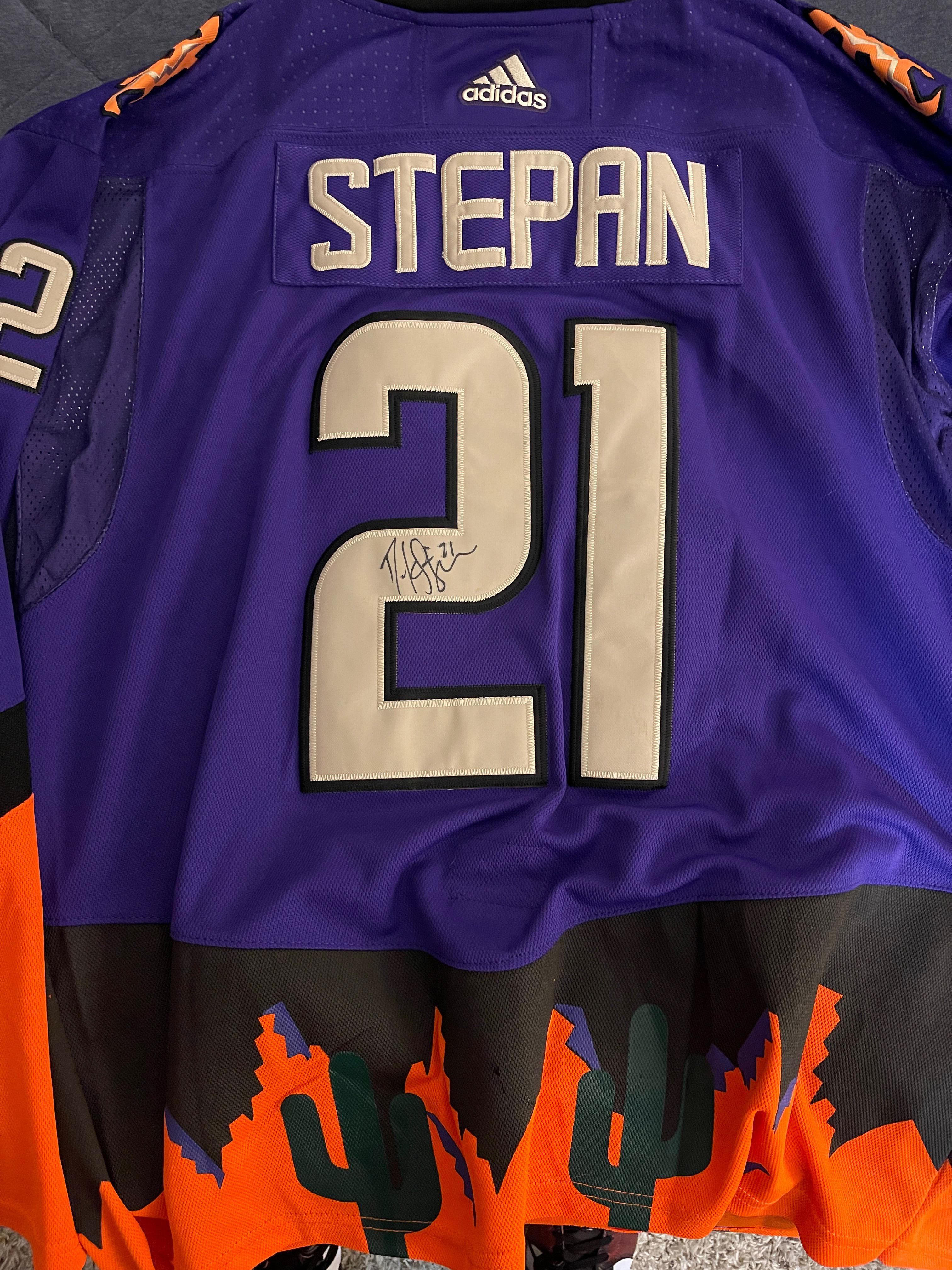 I got this Yotes reverse retro this summer. Knew I had to get it signed tonight. Stepan was so excited to see it, he gave aho a nudge and laughed about it, didn’t realize he got traded right before he had a chance to even wear it. Super cool experience!