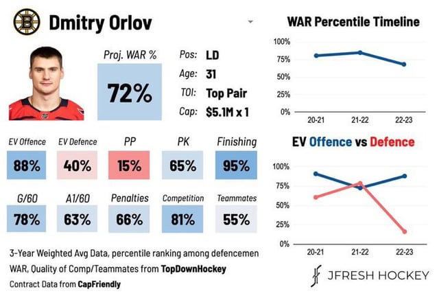 Some advanced analytics for Orlov and Hathaway (shoutout Jfresh). Orlov is a first pair two-way puck moving dman. Hathaway has been one of the most effective defensive fourth wingers in the NHL for the past several seasons.