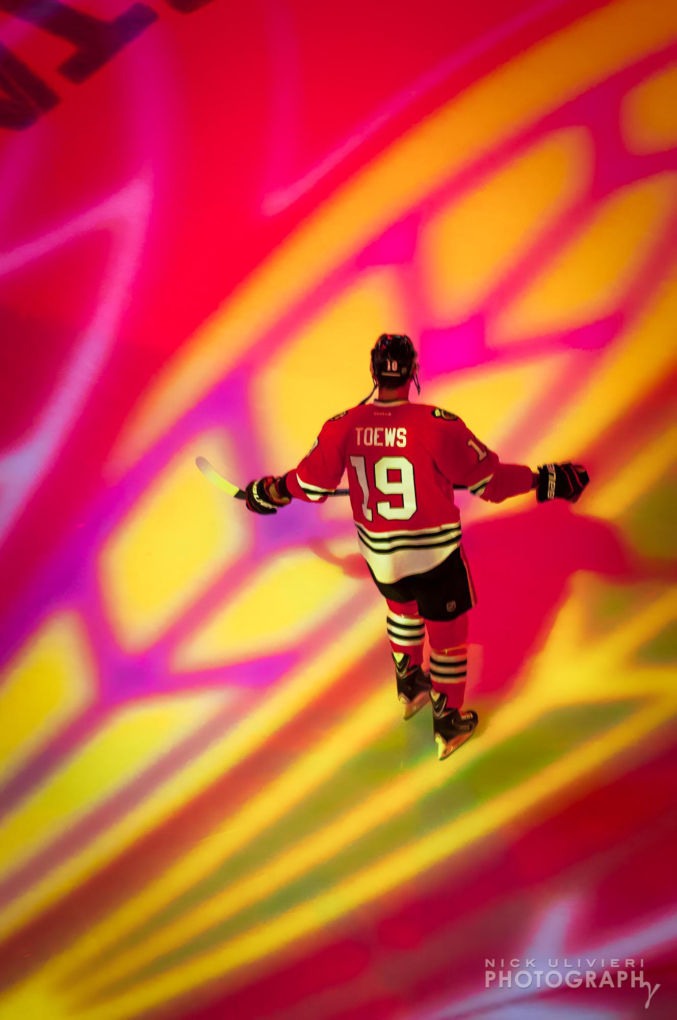 During the Blackhawks peak, I went to a lot of games and often brought my camera. I shot this from the 300 level during warm-ups for Game 7 of the 2013 Western Conference semifinals against Detroit