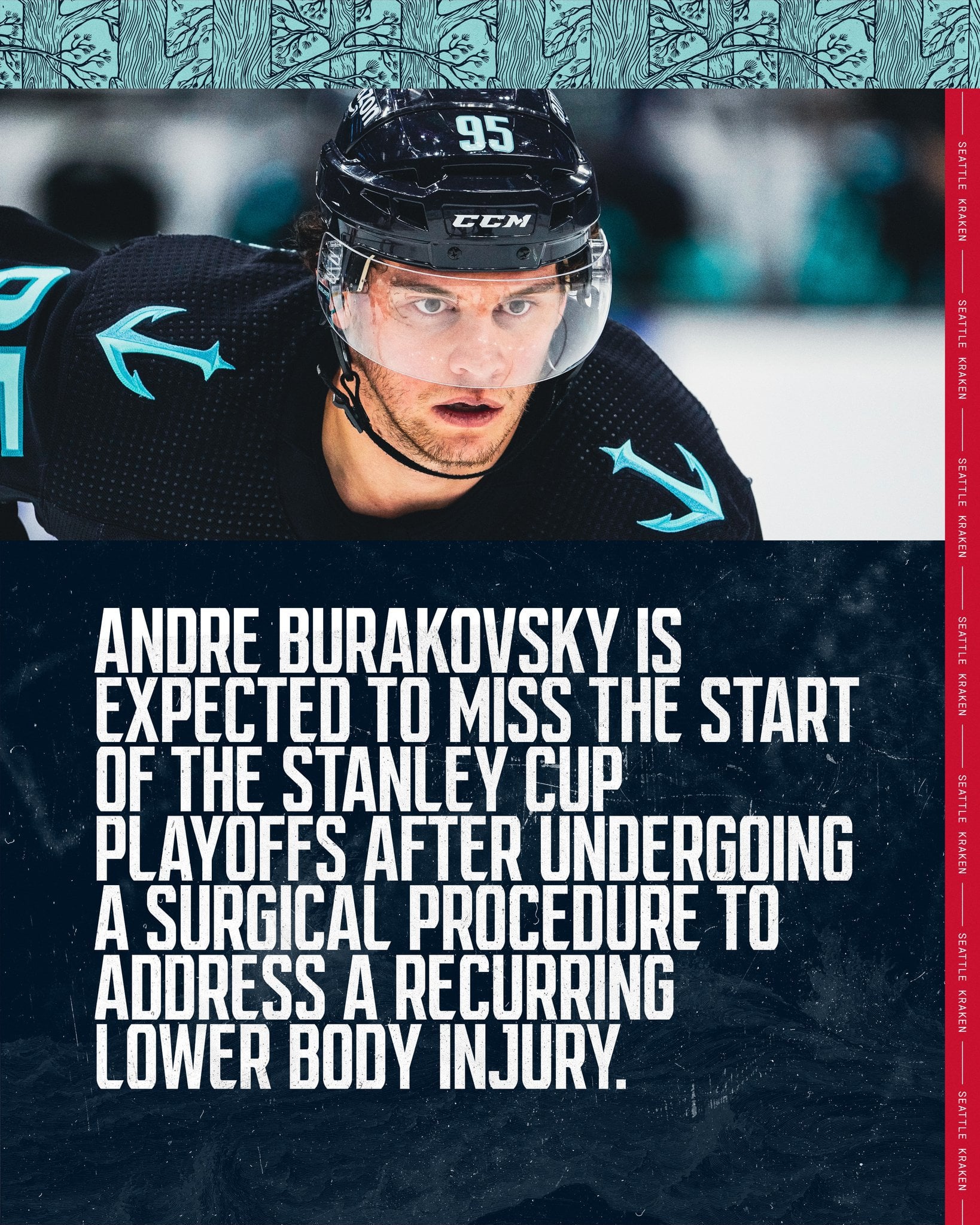 [Kraken] Injury Update on #SeaKraken forward Andre Burakovsky – He will miss start of playoffs