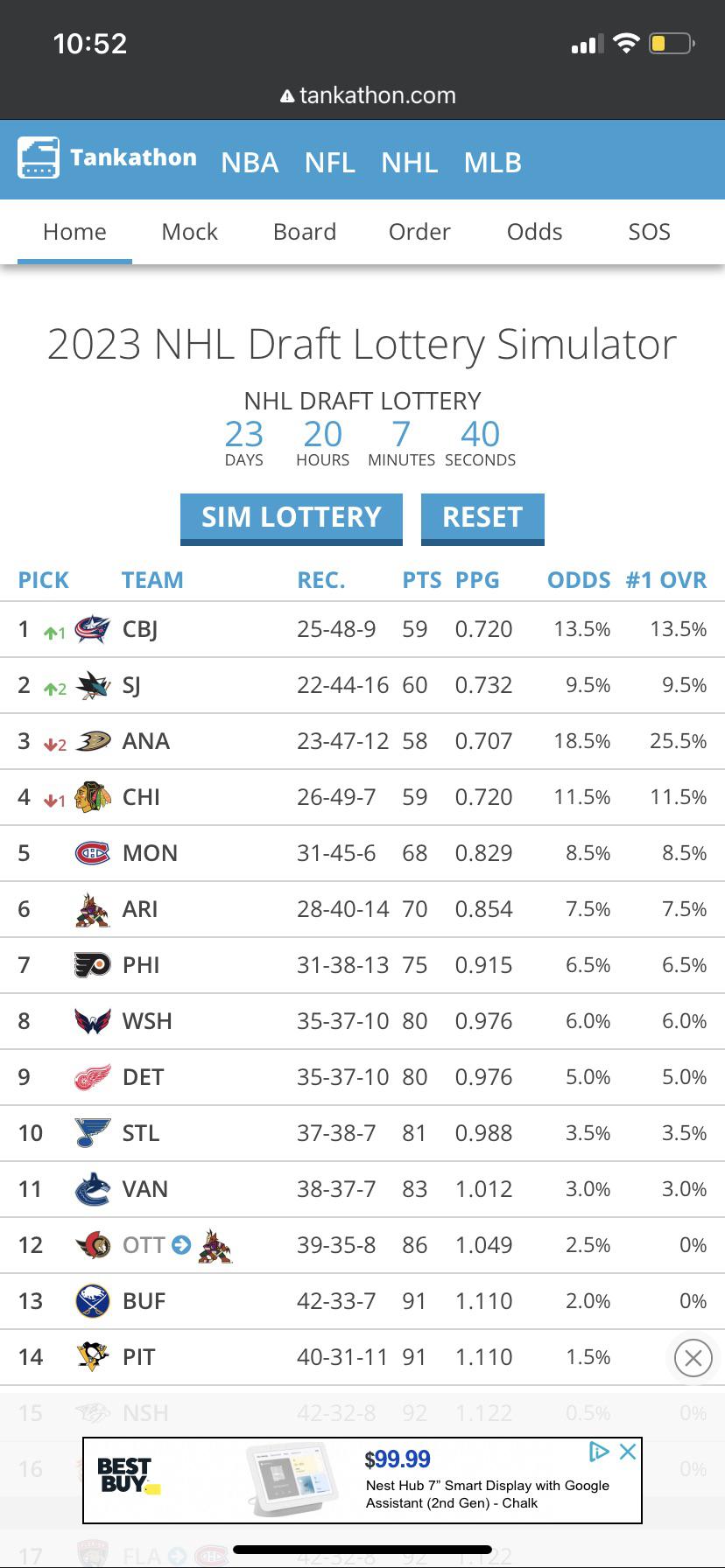 Just a fun note there is a 35% chance Connor Bedard is playing in the Pacific division next year, and a 57.5% chance he plays in the western conference. Enjoy that those out west!