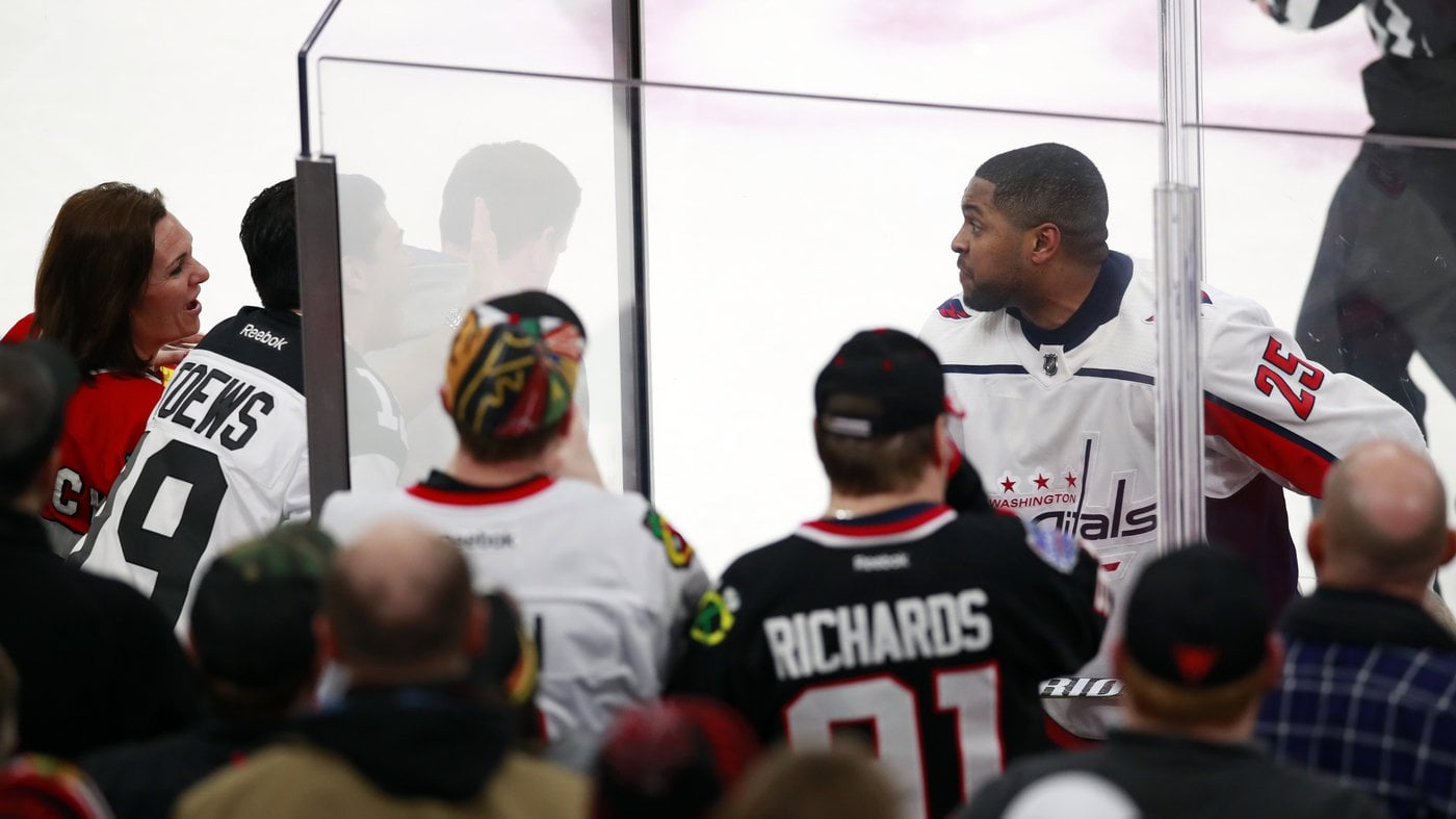 2018 – Chicago Fans chant “Basketball, Basketball, Basketball” at Devante Smith-Pelly in a Penalty box (https://www.npr.org/2018/02/19/587122774/chicago-fans-bounced-for-racist-taunts-aimed-at-capitals-devante-smith-pelly)