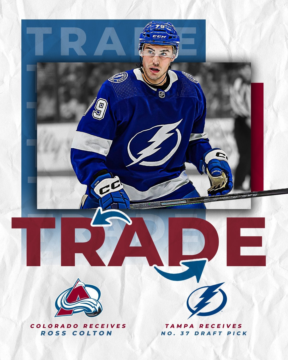 [Avalanche] TRADE: We have acquired Ross Colton from the Tampa Bay Lightning in exchange for the 37th overall pick in the 2023 NHL Draft. #GoAvsGo