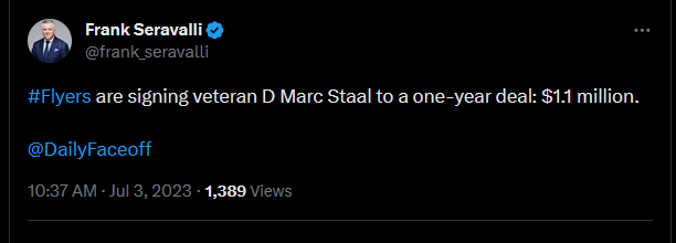 Not the biggest fan of Marc Staal the person, but I’m a fan of this signing. Need some kind of veteran presence to guide the young-ins and that money is about what you would want to pay for that impact. Move him at the deadline to a contender in need of defense depth.