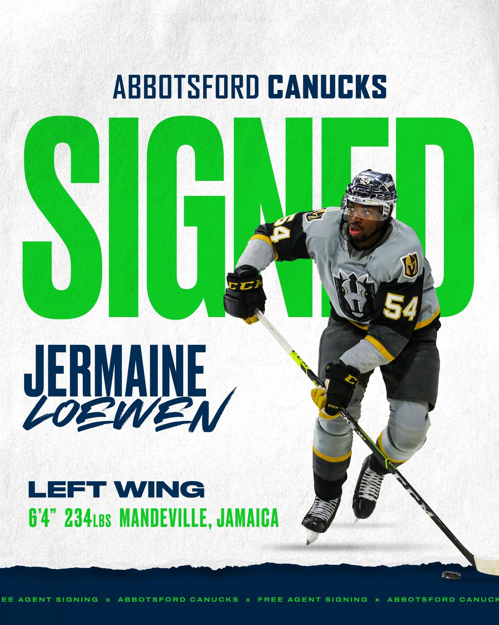 [AbbyCanucks] Abbotsford Canucks General Manager, Ryan Johnson, announced today that the club has signed forward Jermaine Loewen to a two-year contract through the end of the 2024-25 AHL season.