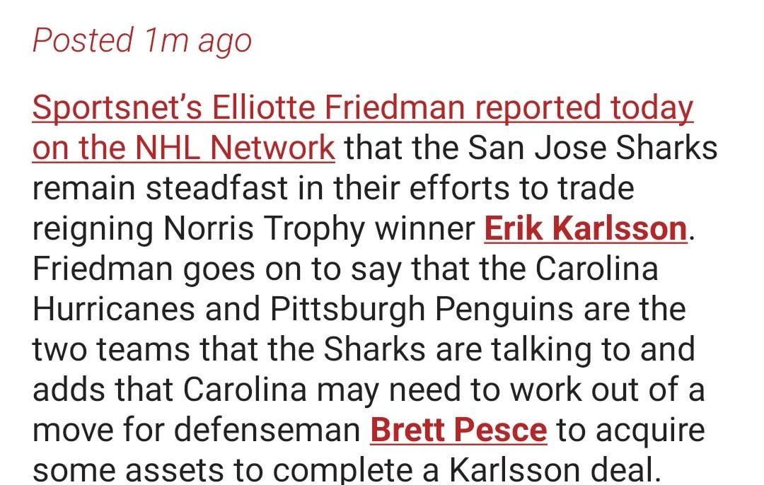 1. Okay, so, say we get rid of Pesce (I personally would rather keep him) and get EK. Then we have 8 signed defensemen (assuming the TDA trade goes through like it is supposed to). Then what? I haven’t heard of plans of moving anyone else. So help me if Chatty is sitting in the press box with Cogs.