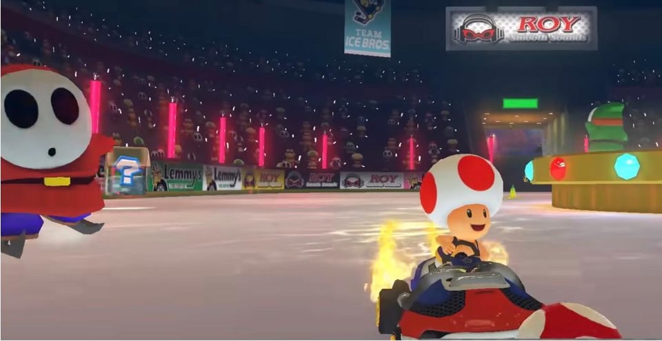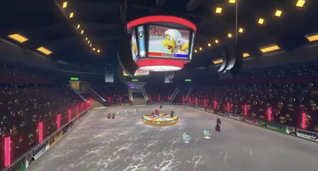bwoah07_gp2 3 years ago Another screenshot shows “M Arena” on the outside of the arena, meaning Mario Arena.So Mario has bought the stadium’s naming rights it seems. Goodbye the name Rogers Arena. 👋