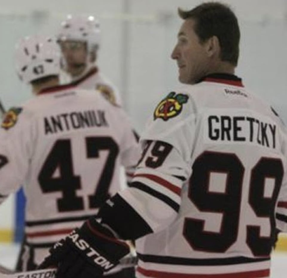 8. For everyone wondering wtf is going on, Gretz ran a fantasy camp (in Vegas I believe) each year for a while, where it was like 10k or something but you spent a week in Vegas with Gretz and some other pros or former pros he would have come in, form two teams, and do a bunch of skills stuff and play games while hanging out the whole week. You basically get treated as if you were an NHL pro, you get the entire experience with equipment staff and coaches and all that. Every year they’d pick an NHL teams jersey to use, this year was the Hawks jerseys. My hockey director (who lived in Vegas which is why I’m pretty sure thats where this took place) was a ref for the event this year IIRC, he has a photo up in his office of it in the stripes with Gretz in a hawks jersey and it’s just so nonsensical that it always makes me laugh to this day.