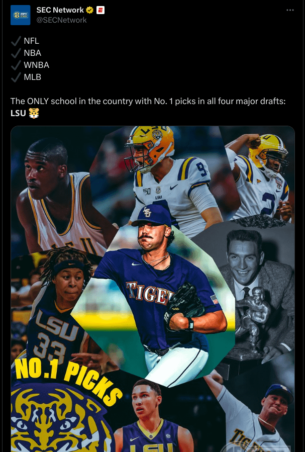Lsu only has club hockey so this likely was meant to mean drafts the school participates in. And the sec is headquartered in Alabama anyway so who knows who tweeted it.