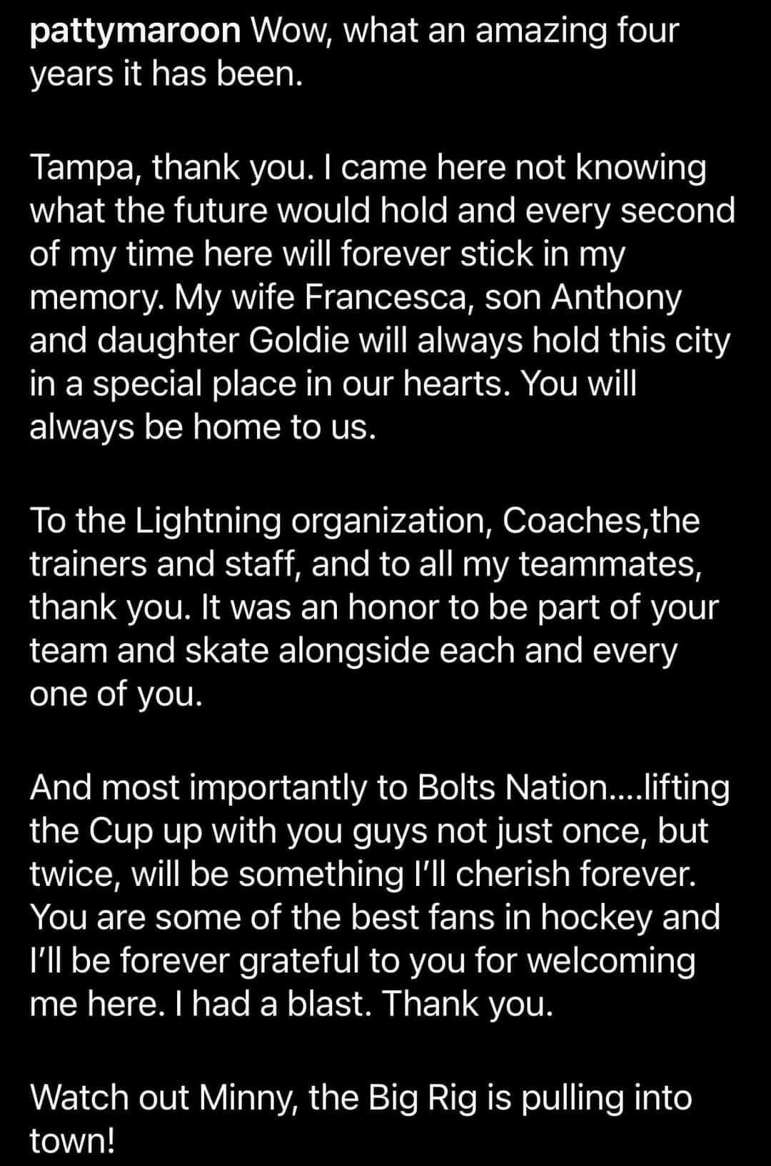 | 59 | [7 comments](/r/TampaBayLightning/comments/14v73f1/maroon_trade_finalizes_overhaul_of_tampa_bay/) | [Maroon Trade Finalizes Overhaul of Tampa Bay Lightning’s Fourth Line](https://boltsbythebay.com/2023/07/07/maroon-trade-finalizes-overhaul-tampa-bay-lightnings-fourth-line/?a_aid=46089)|