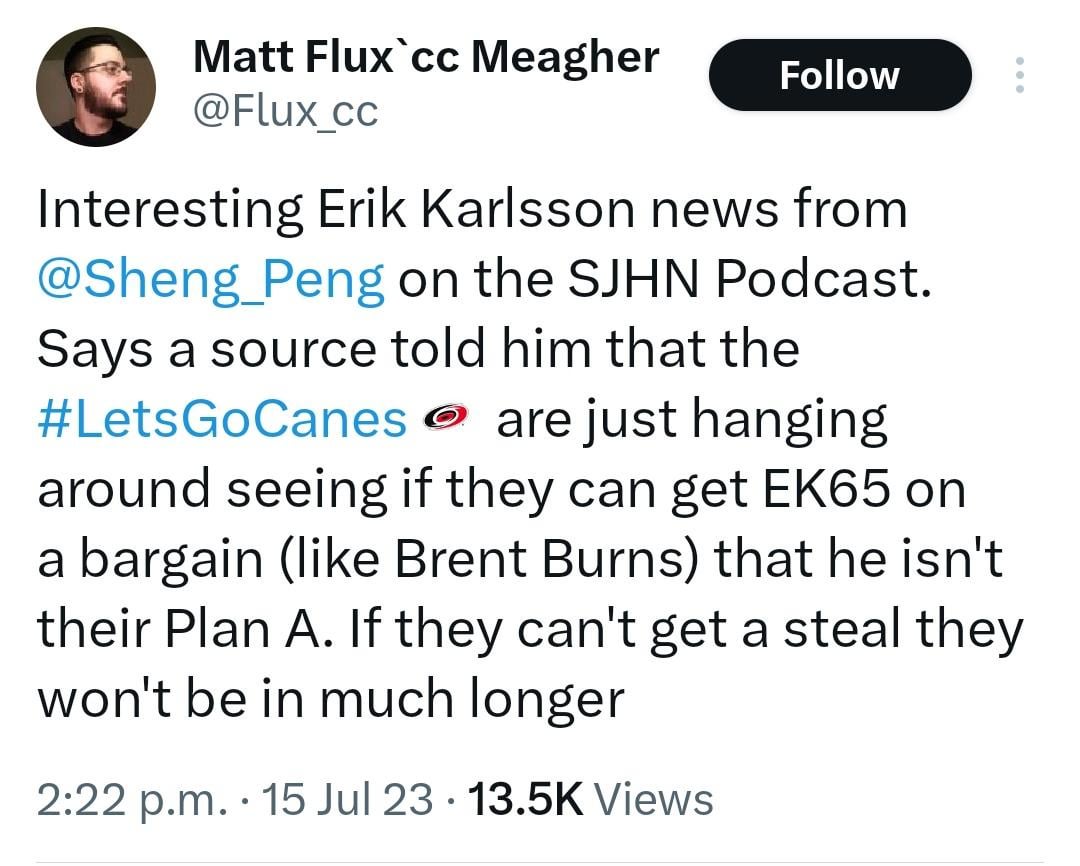 Makes sense. 4 years is a long time to be tied to that much money when the injury clock is likely ticking on Karlsson