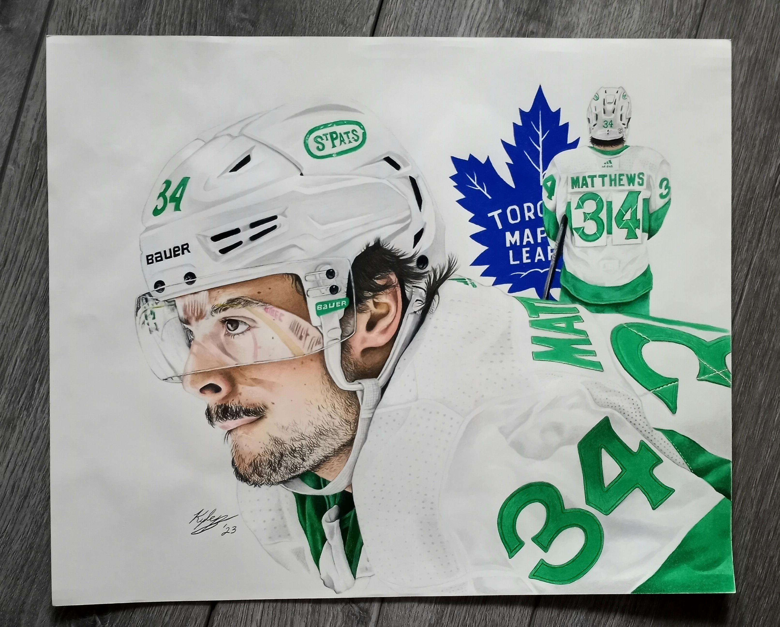 Just finished my colored pencil drawing of Leafs star forward Auston Matthews. This took me roughly 93 hours to complete using Prismacolor Premier Pencils on a 14×17 sheet. Hope you like it!