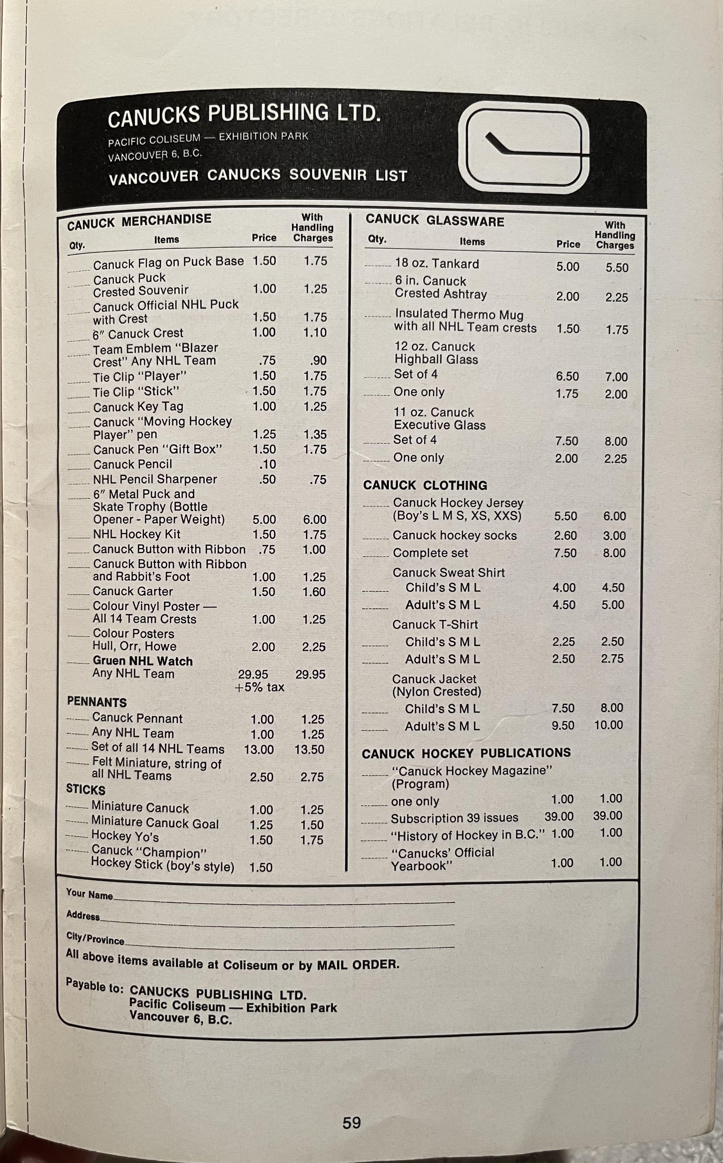 This is what Canucks merch/souvenirs cost in 1970by yosoo Pacific DivisionVancouver CanucksWestern Conference Prev Post Suck It Canada! August 1, 2023 Next Post NICO HISCHIER vs MAT BARZAL 1v1 13vs13… Epic #NJDevils Moment! August 1, 2023 8 Comments yooooooo5774 3 years ago why do they all say “Canuck” instead of Canucks Worstprogrammeralive 3 years ago Low key would like to see the “History of hockey in BC” publication jedzef 3 years ago Interesting to see that they only sold jerseys in boys sizes! Guess it wasn’t considered good decorum for adults to wear them in those days Sager_STAPLES 3 years ago I like they sold an actual rabbits foot with their merch. the_dirty_snakes 3 years ago God bless the glassware section. somewhat_random 3 years ago The watch is cheaper now:https://www.amazon.com/Timex-Mens-Pride-40mm-Watch/dp/B09WJLWTHV/ref=sr_1_2?keywords=canucks+watch&qid=1690873678&sr=8-2 TheSimonToUrGarfunkl 3 years ago It hits different when you are making $2.50 an hour 23emm 3 years ago Ah ya. Back when houses in west van were 10k.Write A CommentYou must be logged in to post a comment.