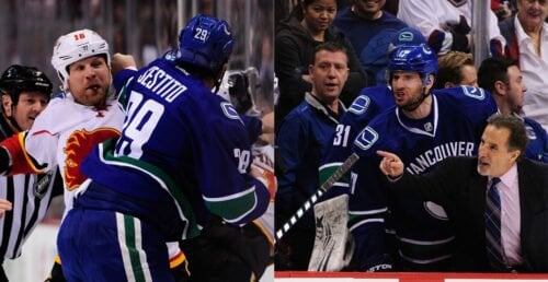 Bieksa’s version on Chiclets was funny. He also talked about being in the hallway and trying to pull one of the Flames players into the trainer’s room to fight again while Torts was charging the Flames