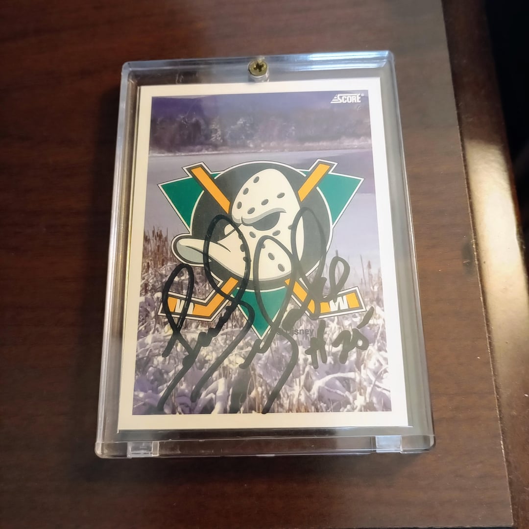 I definitely was in the demographic of kids who started watching hockey because of The Mighty Ducks movie. For whatever reason, Terry Yake caught my eye, so I mailed this in and he was nice enough to autograph it.