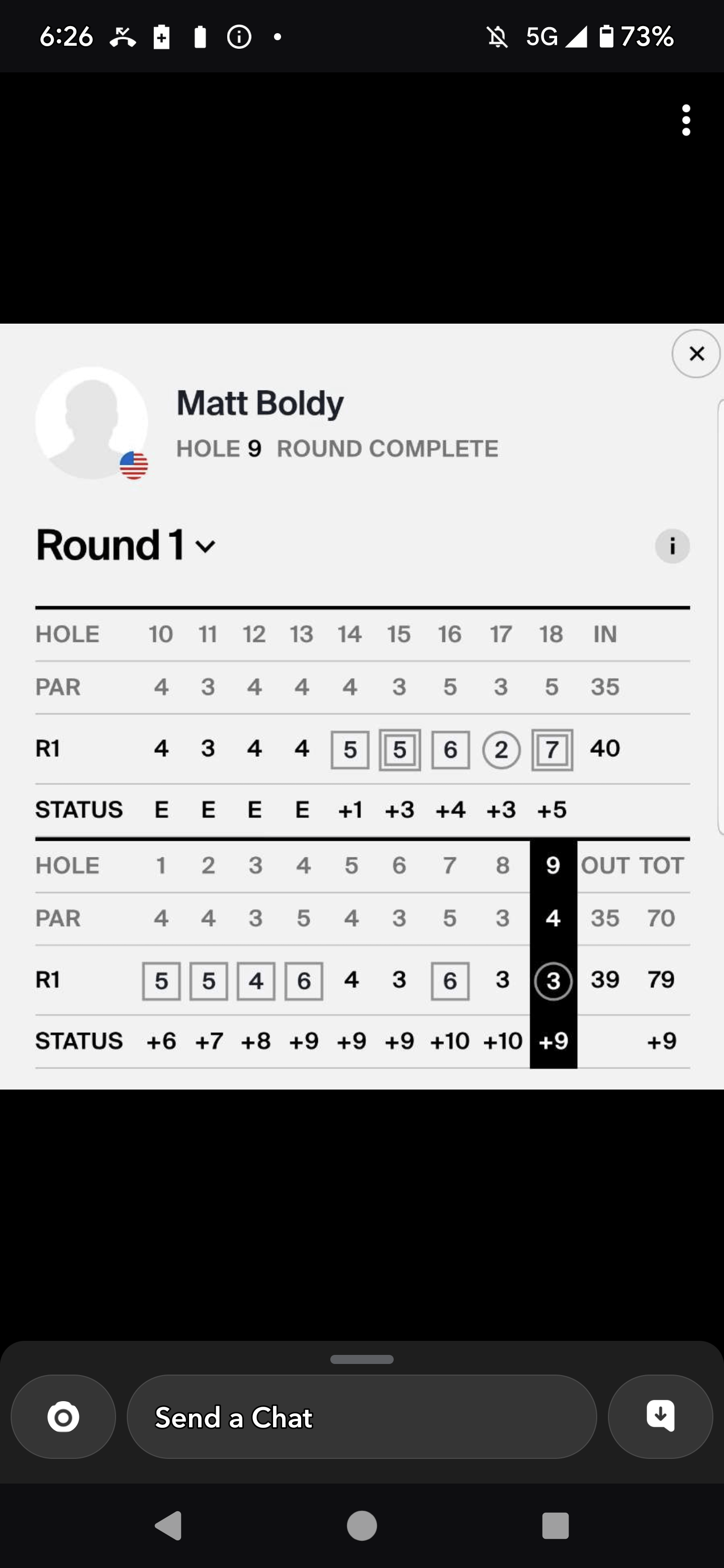 Paladad 2 years ago Showing my lack of golf here: Why is the status higher on that bottom chart? If he shot in 5 on a par 4, it should be +1, not +6, right? Am I reading it wrong?