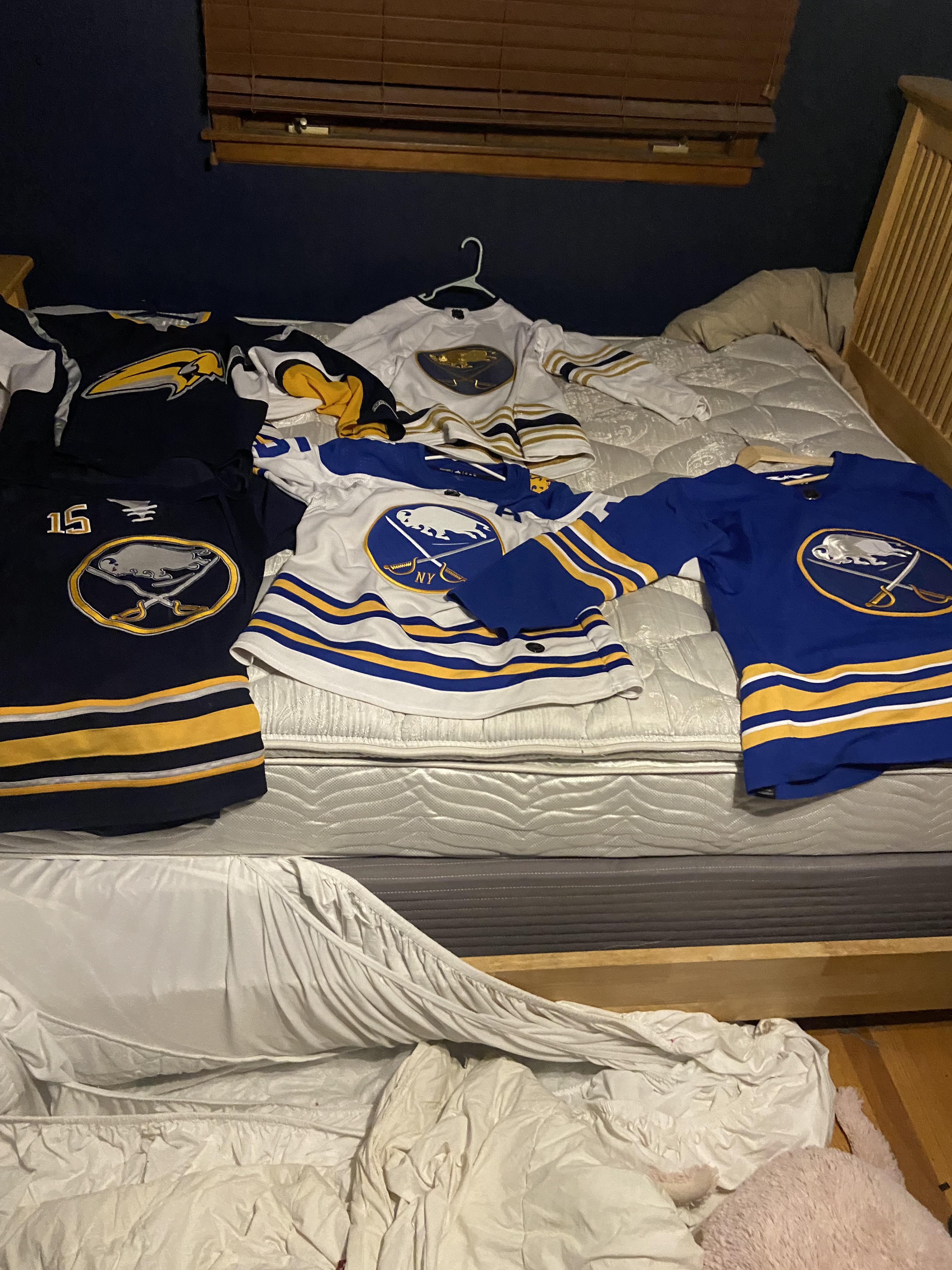 I have 2 other jerseys but one’s a fake and other is kind of sketchy by A_Transgirl_Alt Atlantic DivisionBuffalo SabresEastern Conference Prev Post NAHA 2022-23 Eastern Conf. Quarterfinal Game 3 – Quebec Nordiques @ Florida Rockets (QBC leads 2-0) September 5, 2023 Next Post Fanelli Joins Edmonton Oilers September 5, 2023 5 Comments mwthomas11 2 years ago Noice! That 2018 winter classic is so great… love the little NY in the crest KraftPunk44 2 years ago Next time I recommend to make your bed and get a good overhead shot la_fontaine 2 years ago Looks like a Sabres themed murder scene FlurgleBurbleHobbits 2 years ago Girl you need to get yourself a goathead!! _Travelling_Dude 2 years ago Nice on the Buffaslug jersey!Write A CommentYou must be logged in to post a comment.