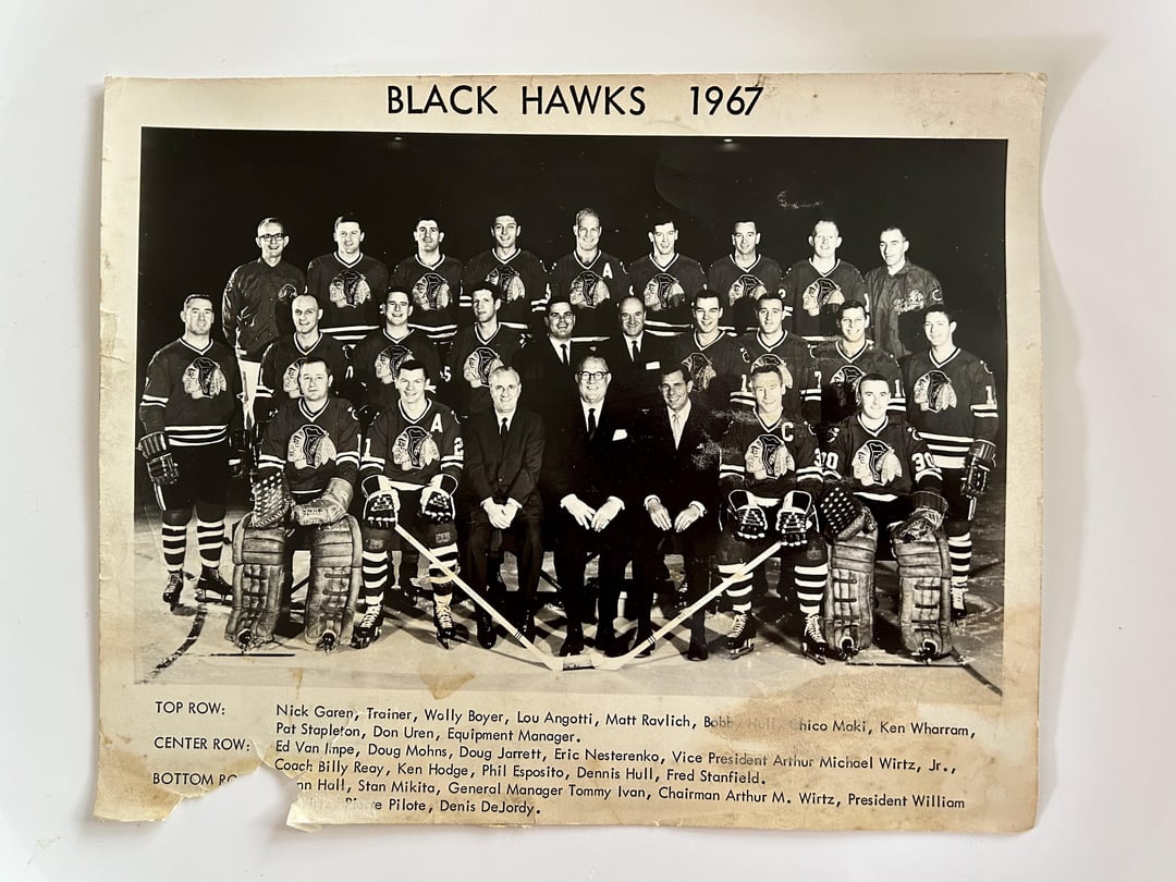 In the mid 1970s when I was a kid,I was gifted this picture from Doug Mohns of the 1967 Blackhawks with a number of autographs on the back.
